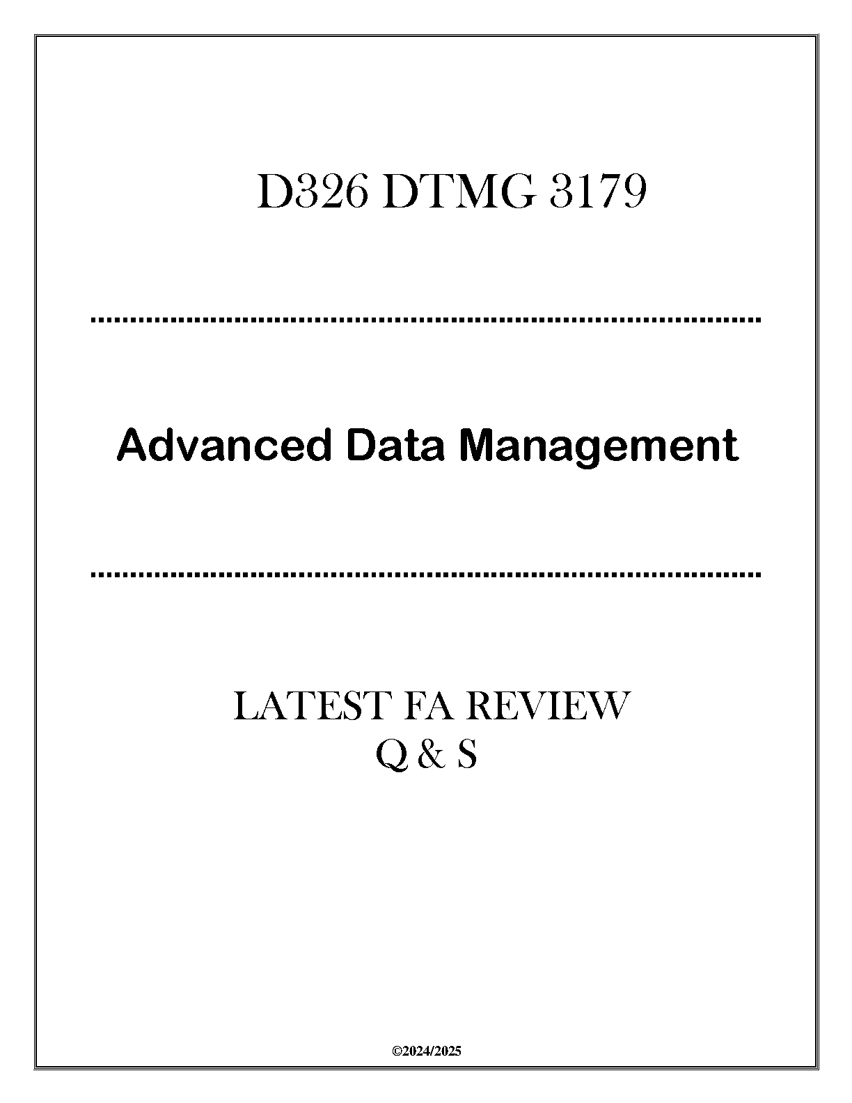 Advanced Data Management D326 DTMG 3179: Latest 2024-2025 Exam Review Q&A for First-Time Pass