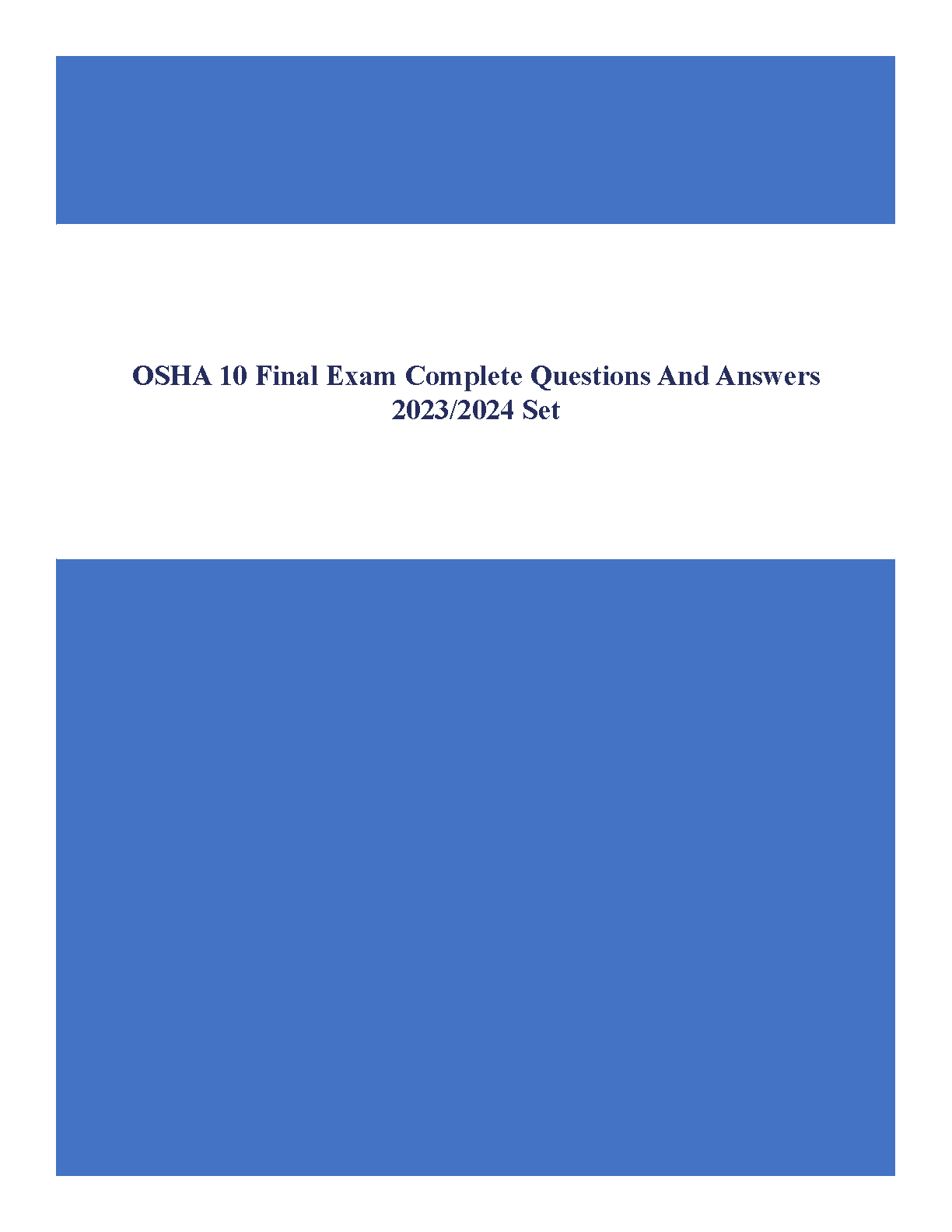 OSHA 10 Final Exam Complete Questions and Answers 2023/2024 Set: Ace Your Exam on the First Try