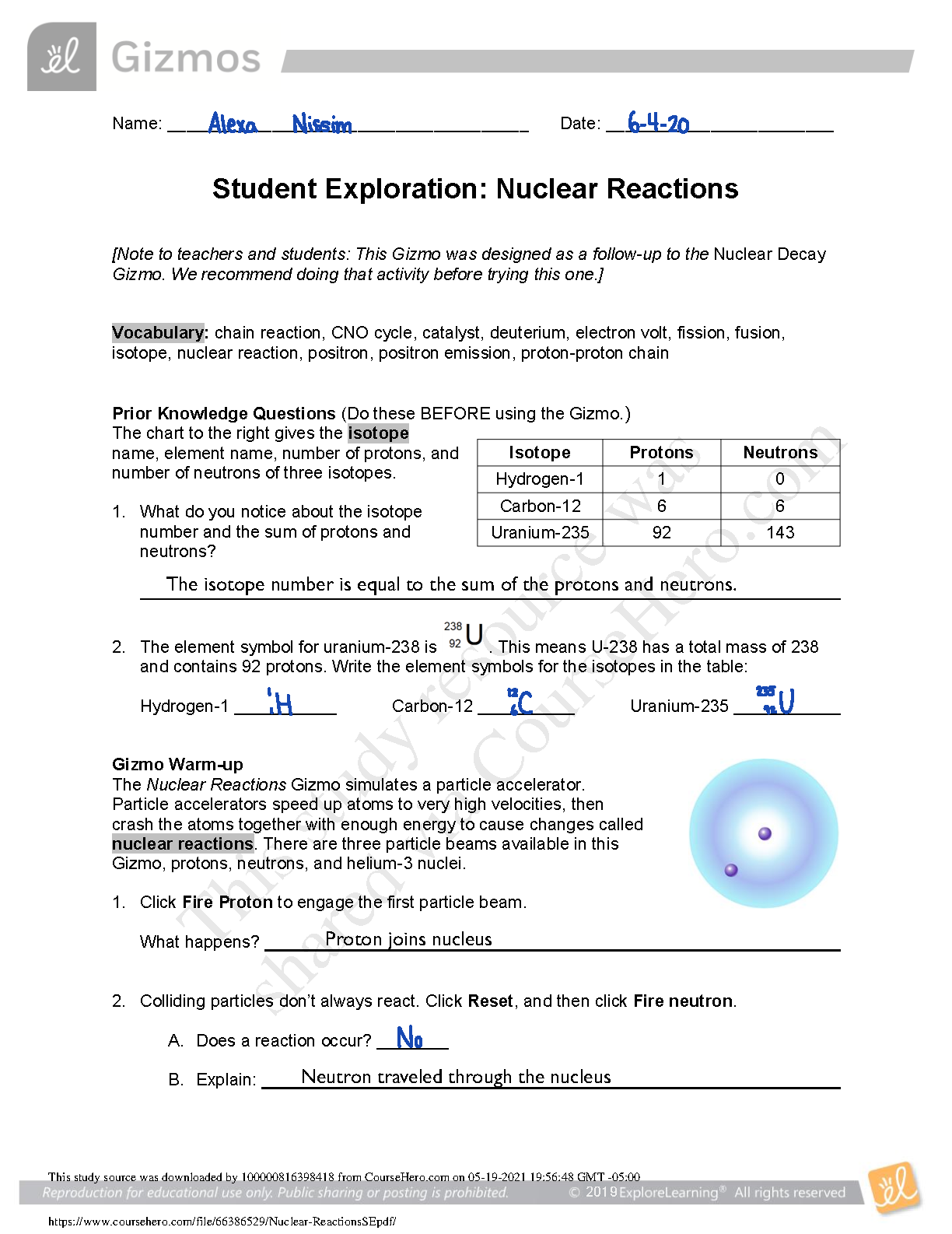 Nuclear Reactions Gizmo Student Exploration by ExploreLearning