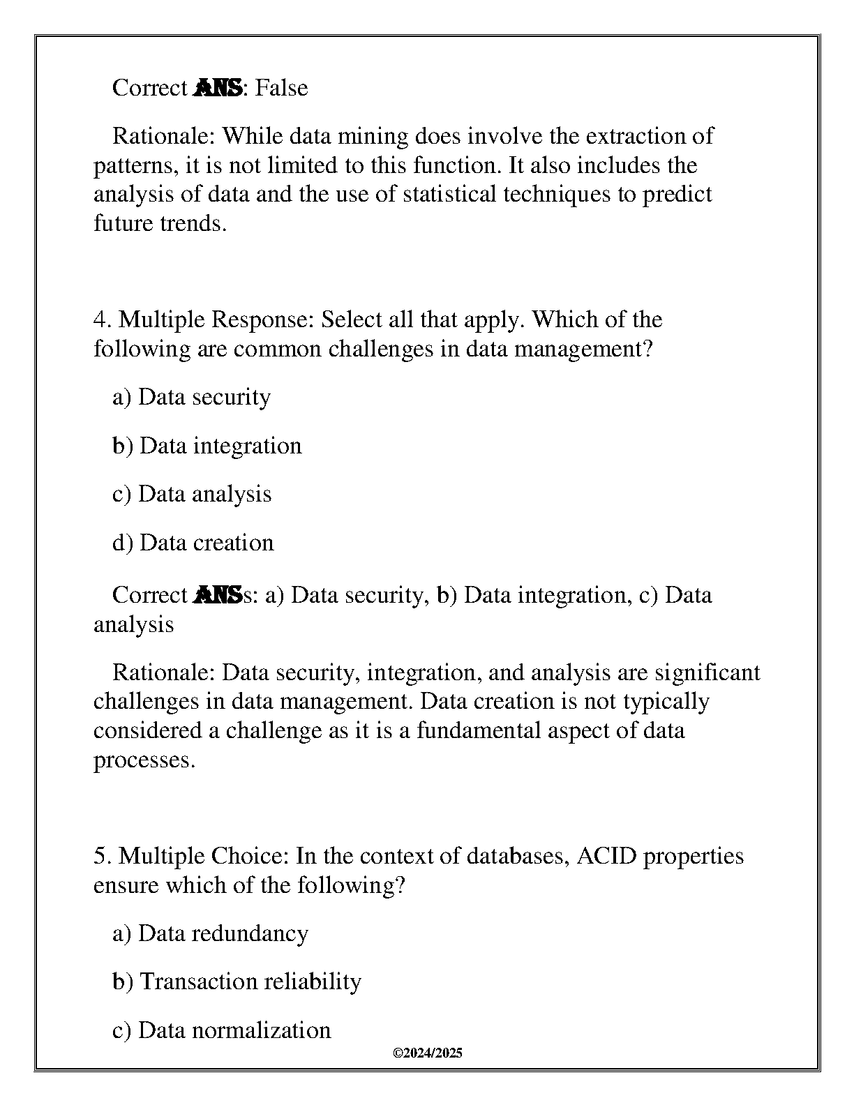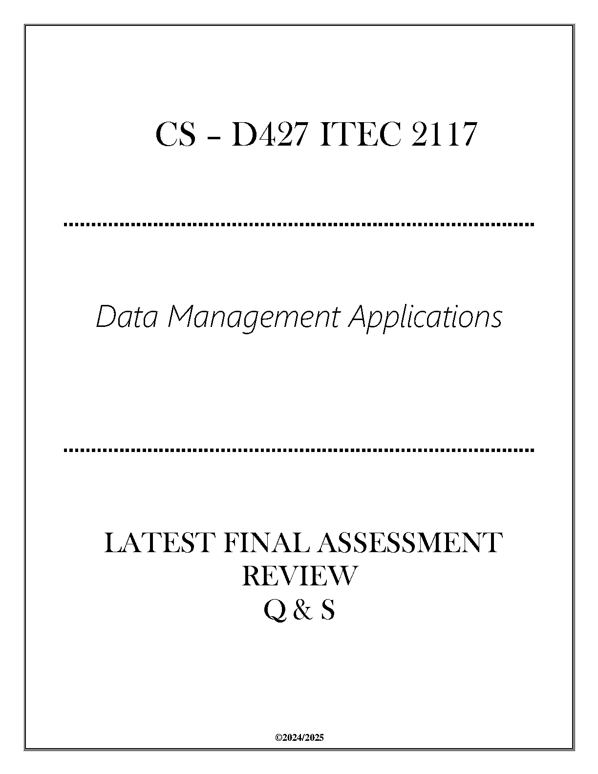 Data Management Applications - CS-D427 ITEC 2117: Latest 2024-2025 Final Assessment Review Q&A