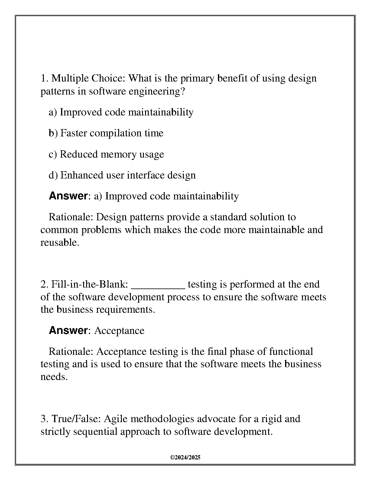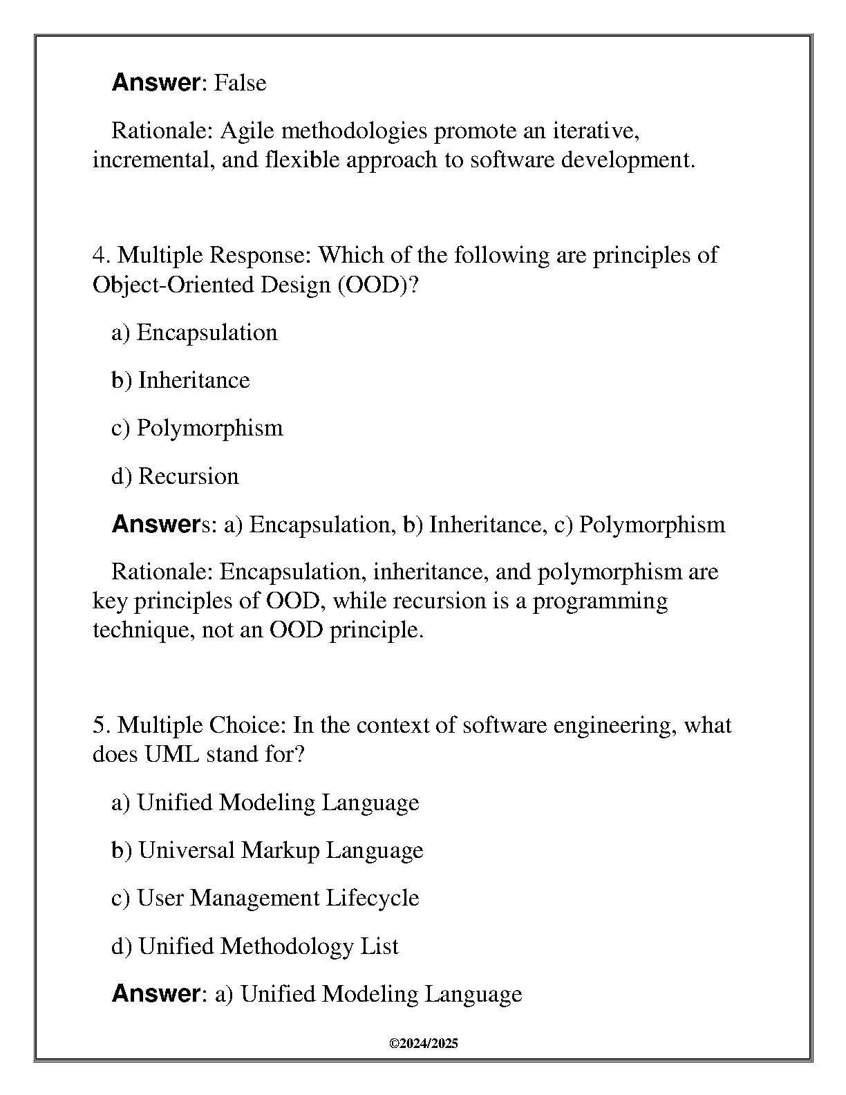 2024/2025 Software Engineering: Latest Objective Assessment Review Q&A for CS - D284 ITSW 2226