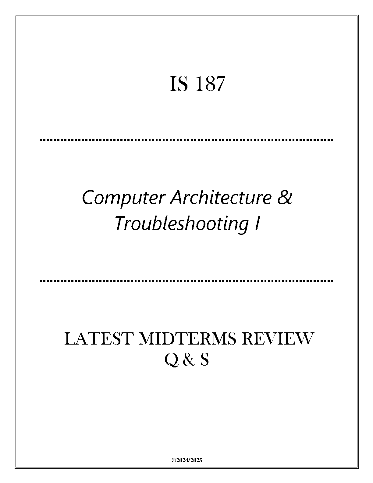 IS 187 Computer Architecture & Troubleshooting I: Midterm Review Questions & Answers (2024/2025 Edition)