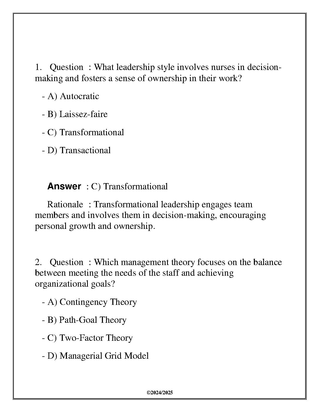 NUR356 Leadership & Management Midterm Review Questions and Answers 2024/2025 Edition