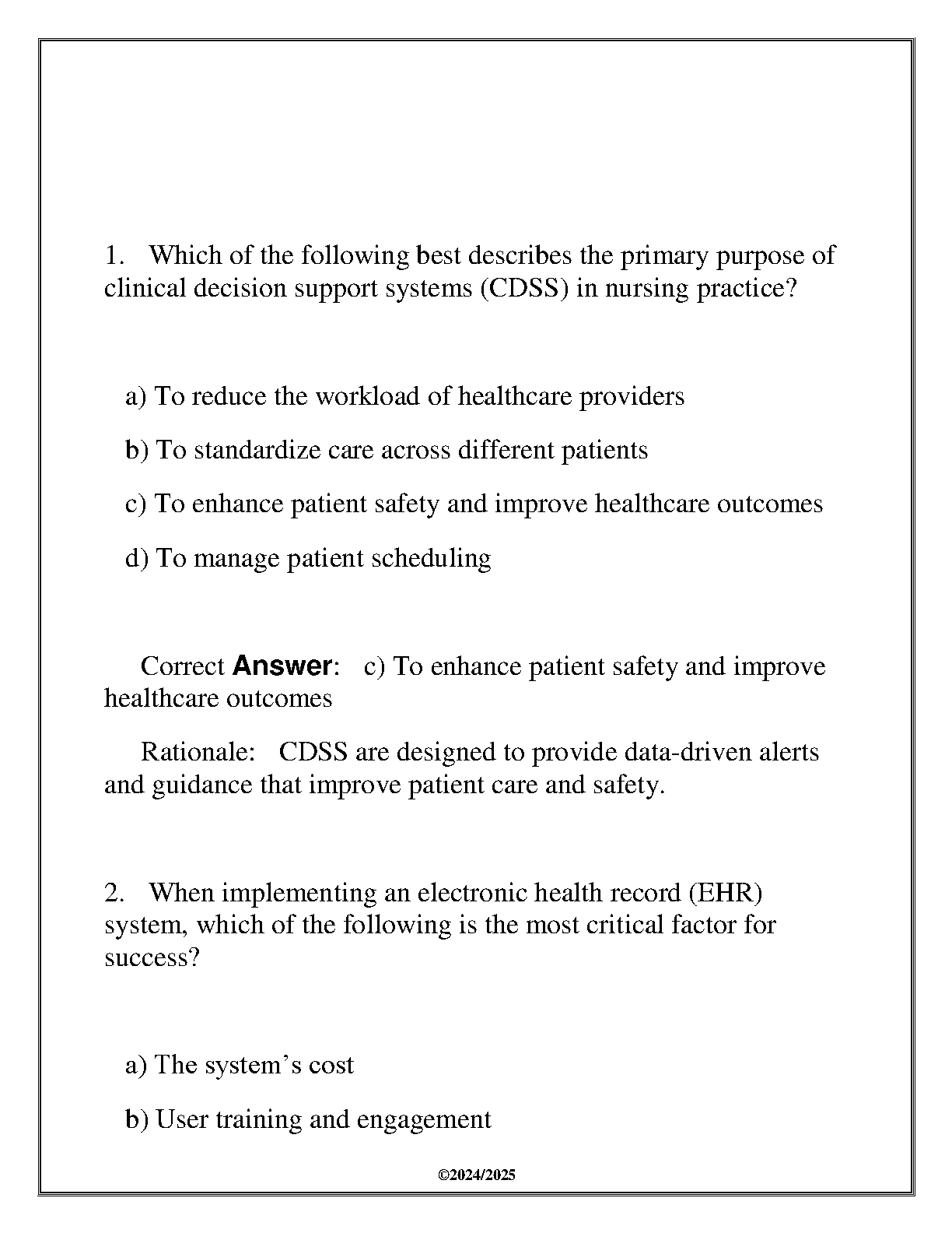 NUR338 Informatics Midterm Review Questions and Answers for 2024/2025 Academic Year