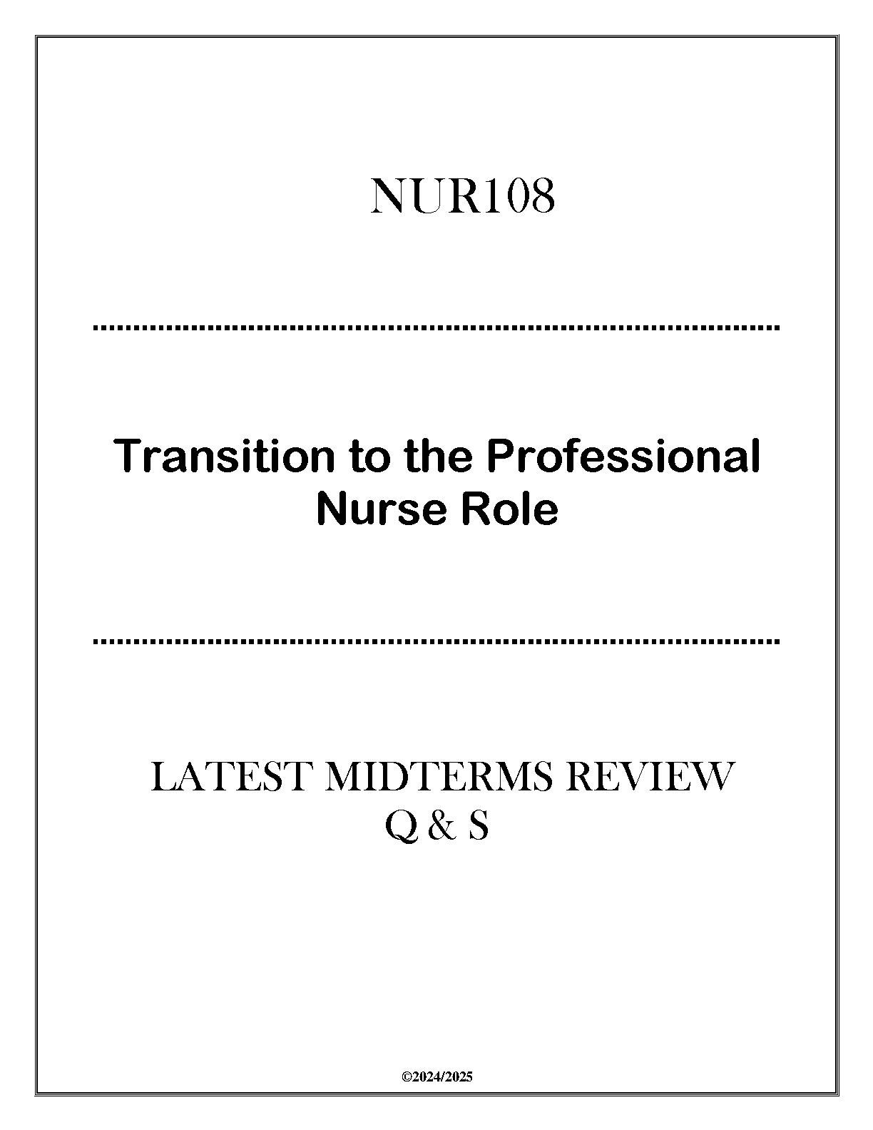 NUR108 Transition to the Professional Nurse Role: Midterm Exam Review Questions and Answers for 2024-2025 Academic Year