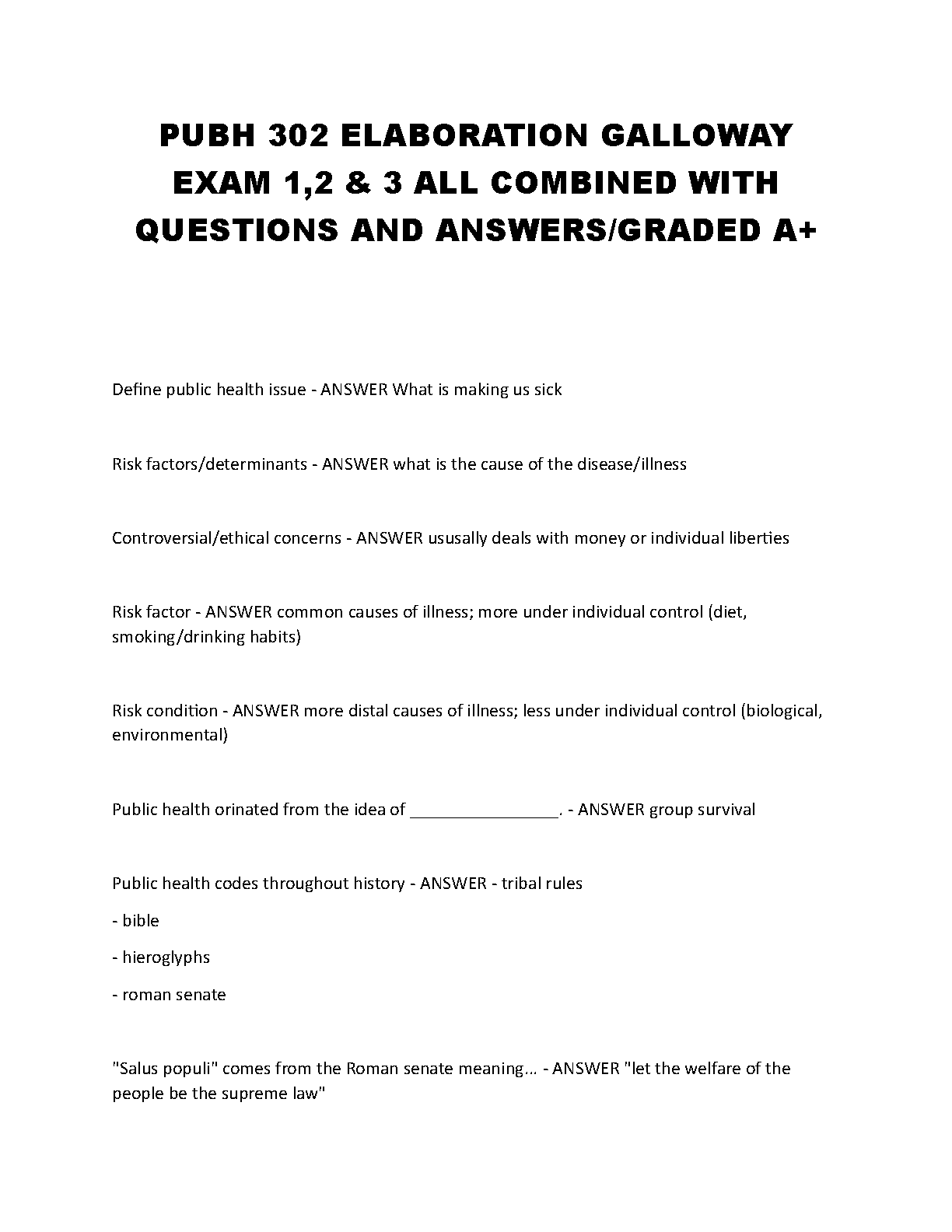 PUBH 302 Exam Elaboration: Galloway's Combined Exams 1, 2 & 3 Questions and Answers