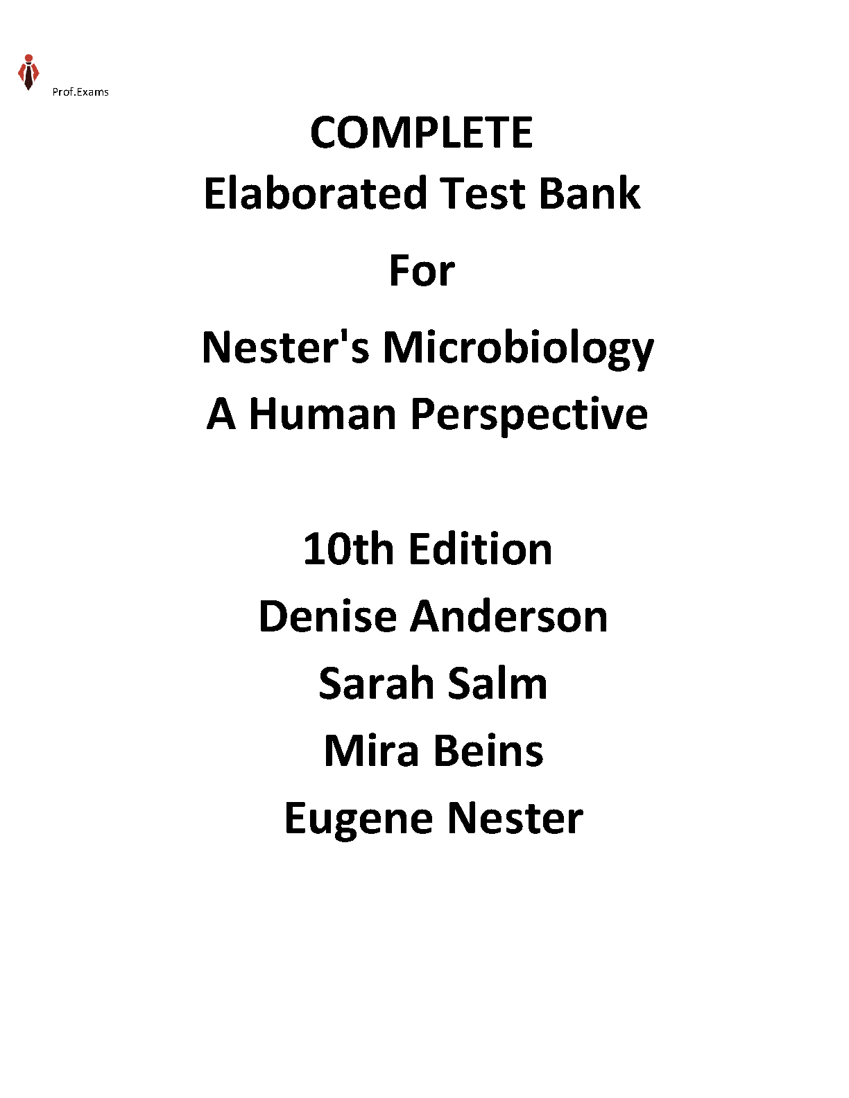 Nester's Microbiology: A Human Perspective, Tenth Edition Test Bank by Denise Anderson, Sarah Salm, and Mira Beins