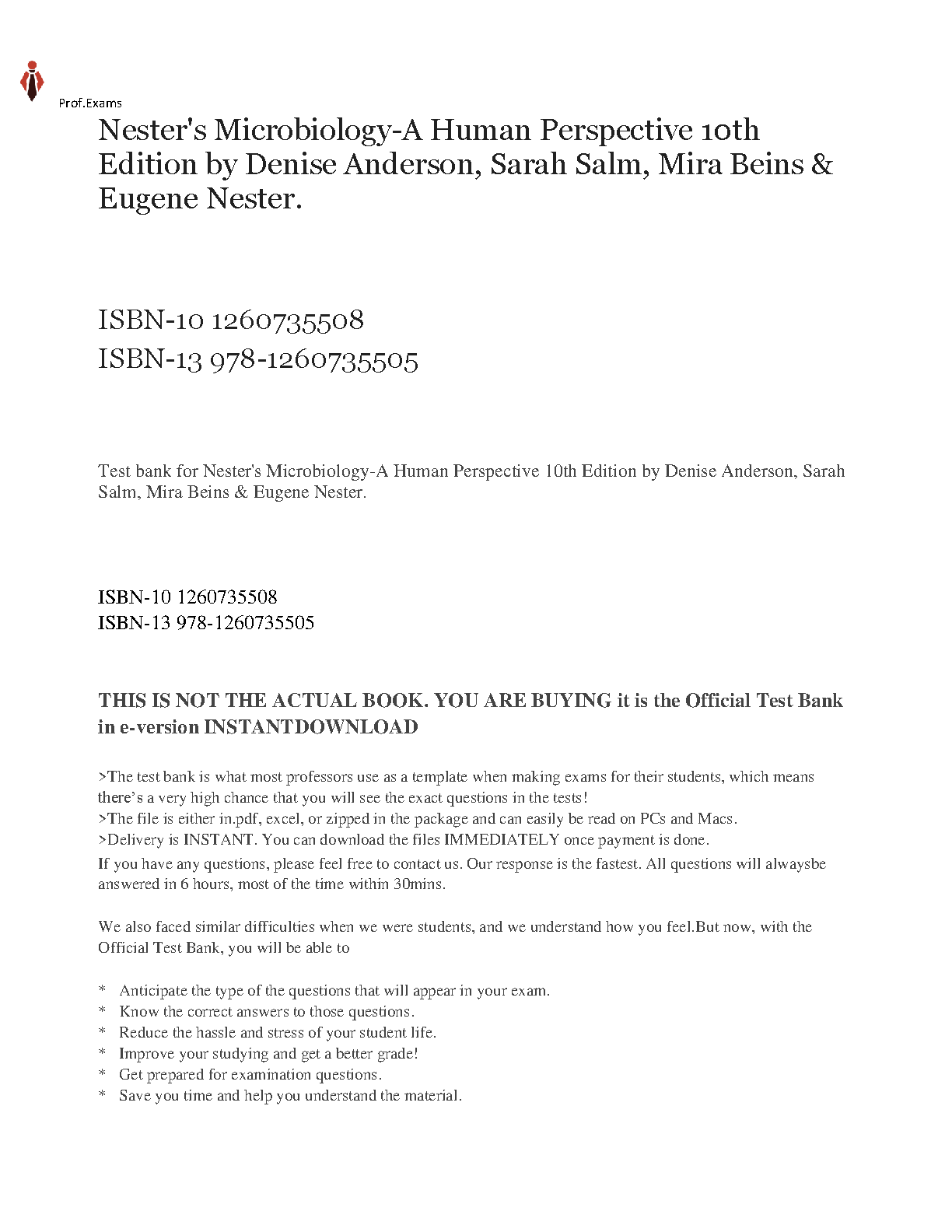 Ace your Microbiology exams with this comprehensive test bank for Nester's Microbiology: A Human Perspective, Tenth Edition. Prepare effectively and confidently for success. This resource helps students achieve exam mastery on the first attempt, avoiding the stress and time loss of resits.