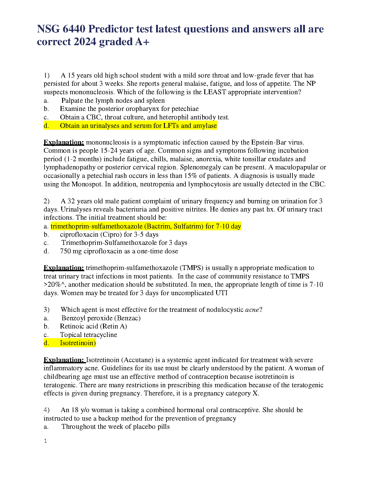 NSG 6440 Predictor Test: Latest Questions and Answers 2024 Edition for A+ Grade