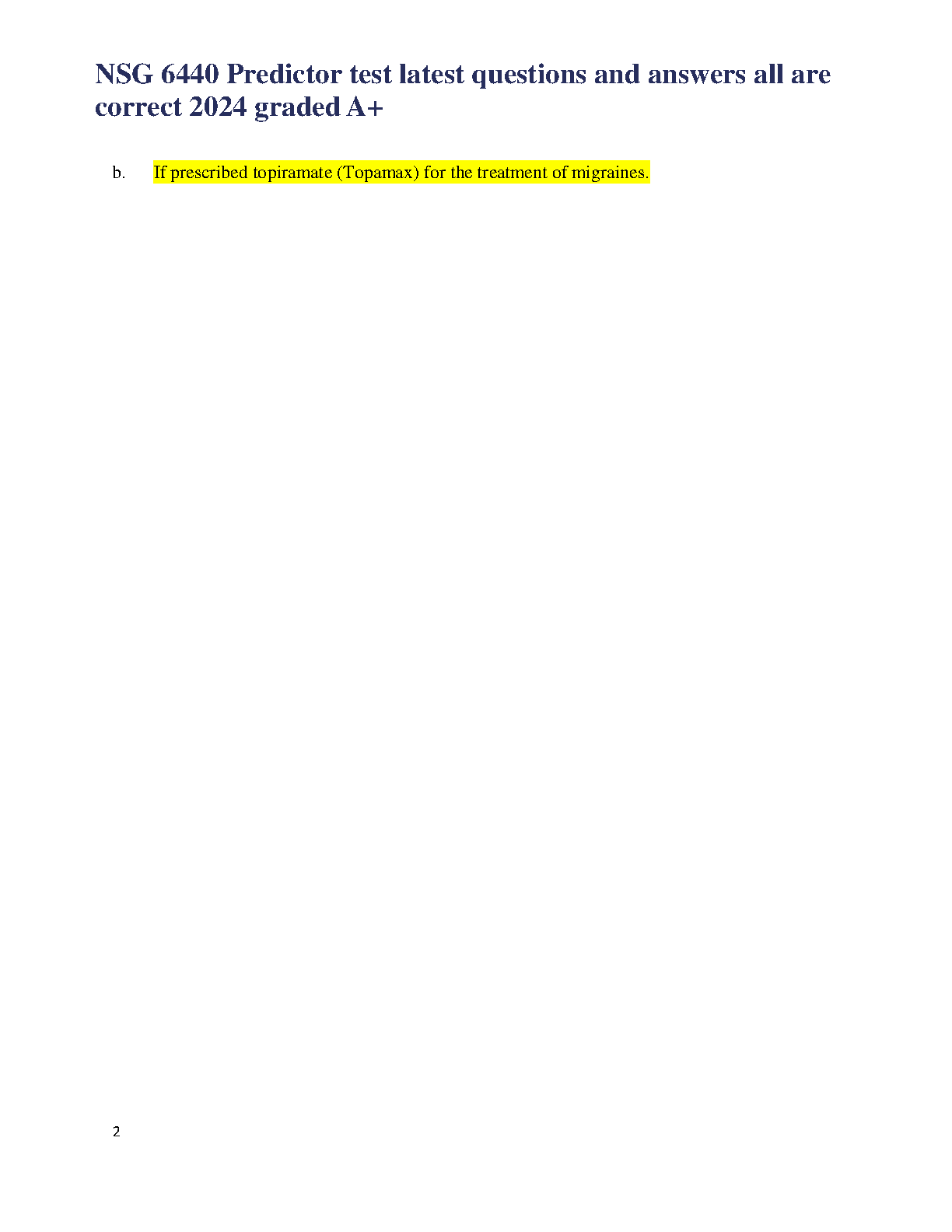 Ace your NSG 6440 Predictor exam with this comprehensive 2024 edition, featuring the latest questions and answers guaranteed to get you an A+. Prepare effectively and avoid resits.