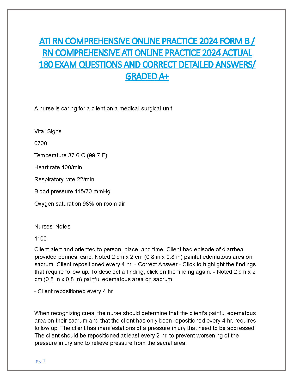 ATI RN Comprehensive Online Practice 2024 Form B: 180 Exam Questions and Correct Detailed Answers by ATI