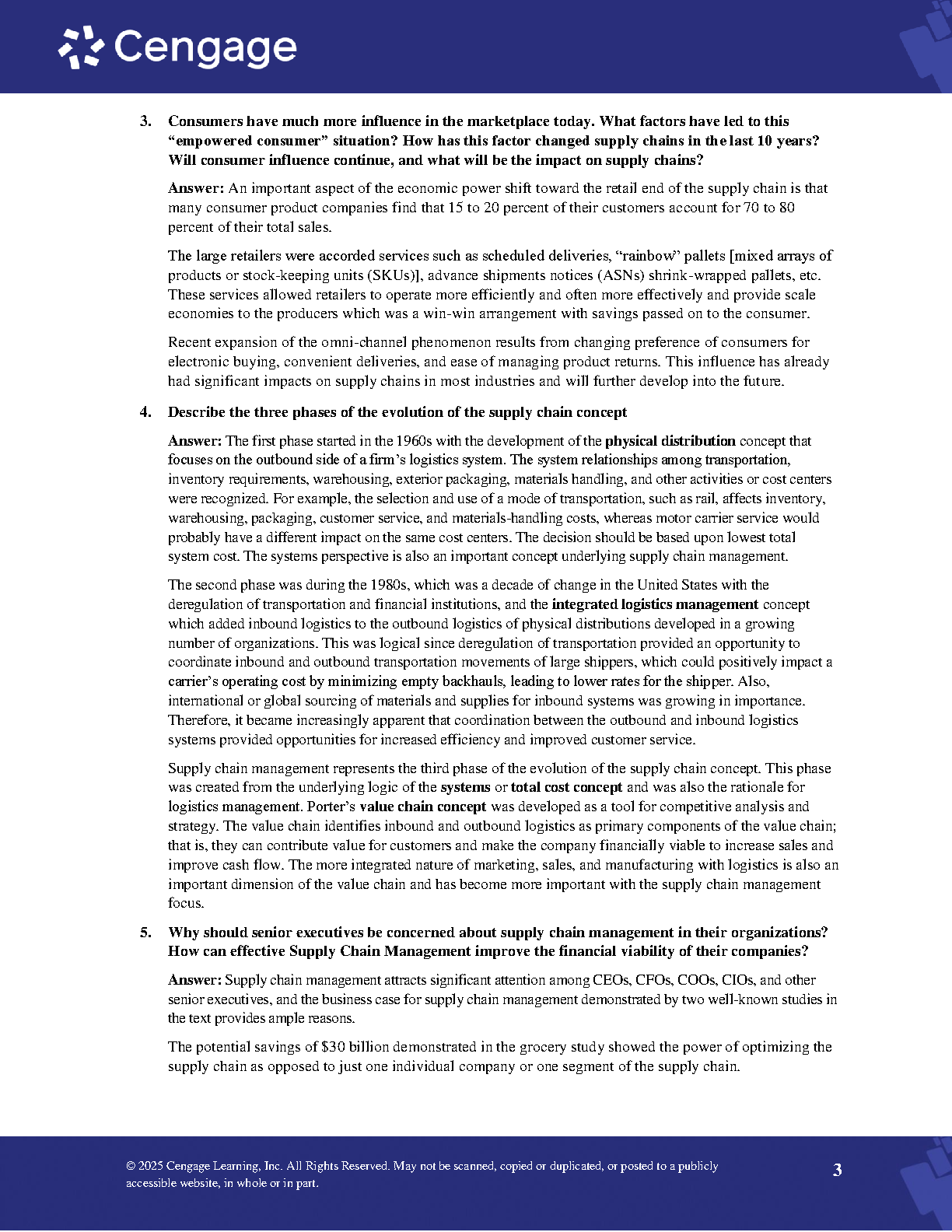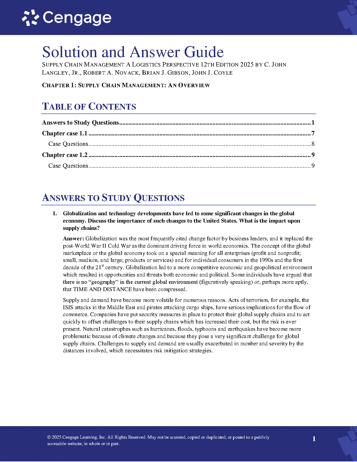 Supply Chain Management A Logistics Perspective 12th Edition 2025 Solution Manual by C. John Langley Jr., Robert A. Novack, Brian J. Gibson, John J. Coyle