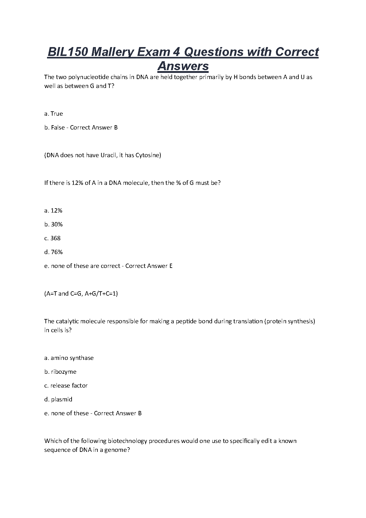 BIL 150 Mallery Exam 4 Questions with Correct Answers: A 2024/2025 Edition for Exam Success
