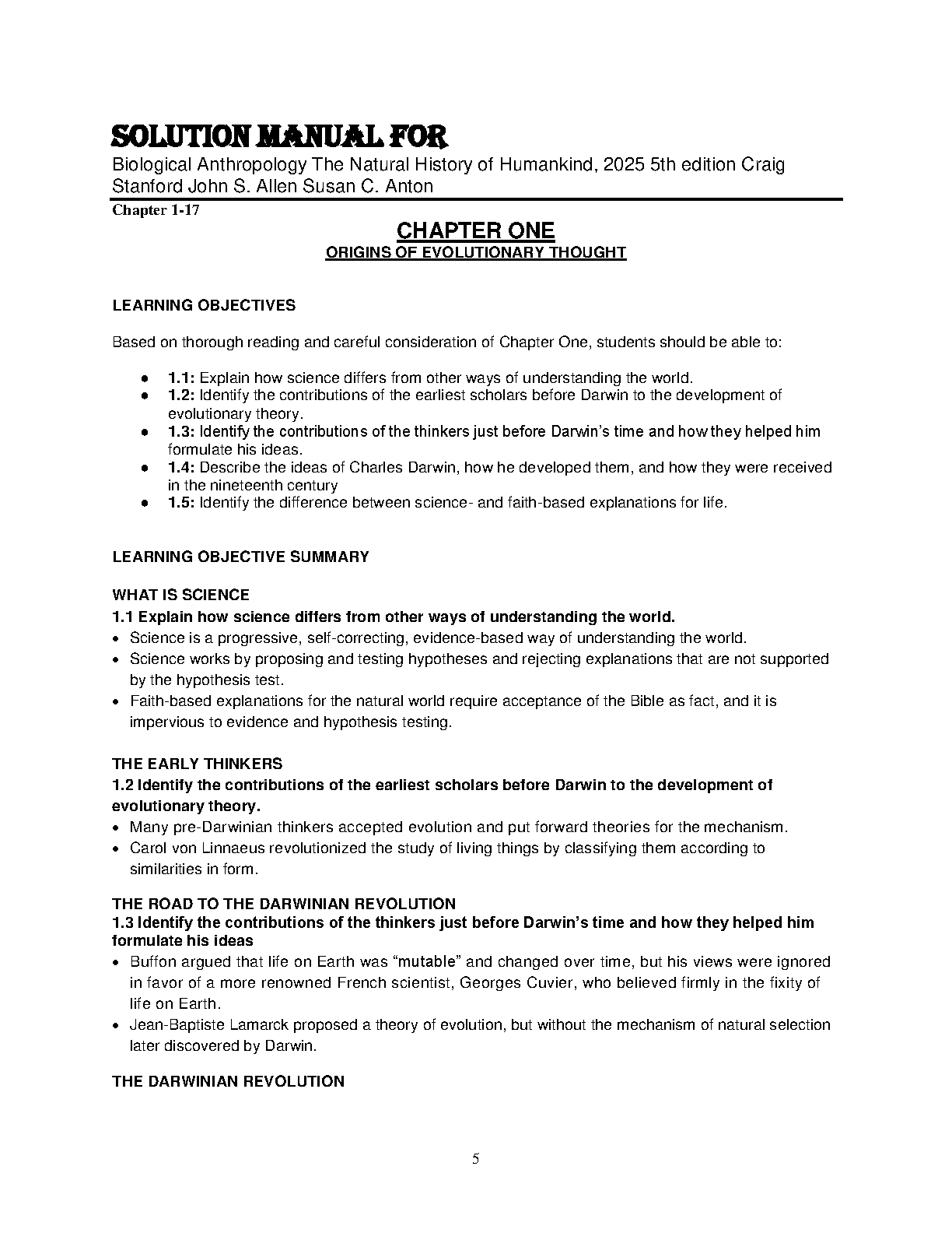 Solution Manual for Biological Anthropology: The Natural History of Humankind, 5th Edition, by Craig Stanford, John S. Allen, and Susan C. Anton