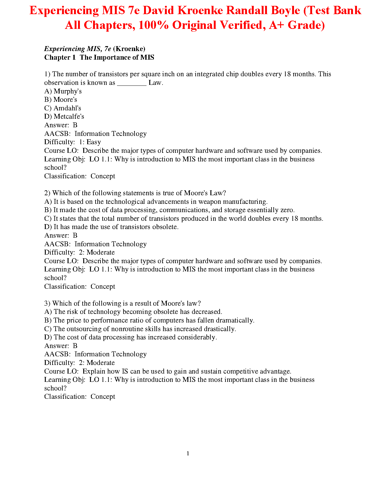 Experiencing MIS, Seventh Edition Test Bank by David M. Kroenke and Randall J. Boyle