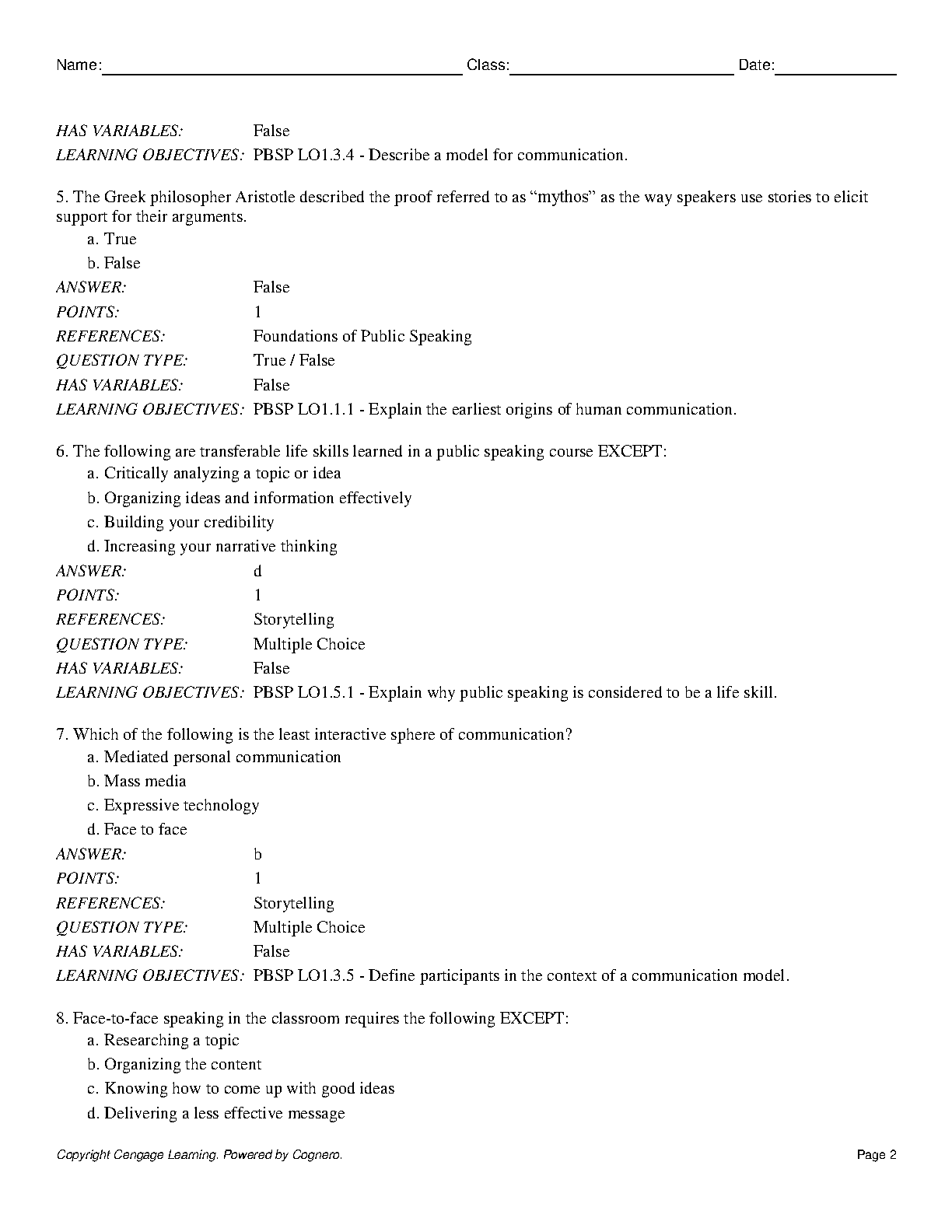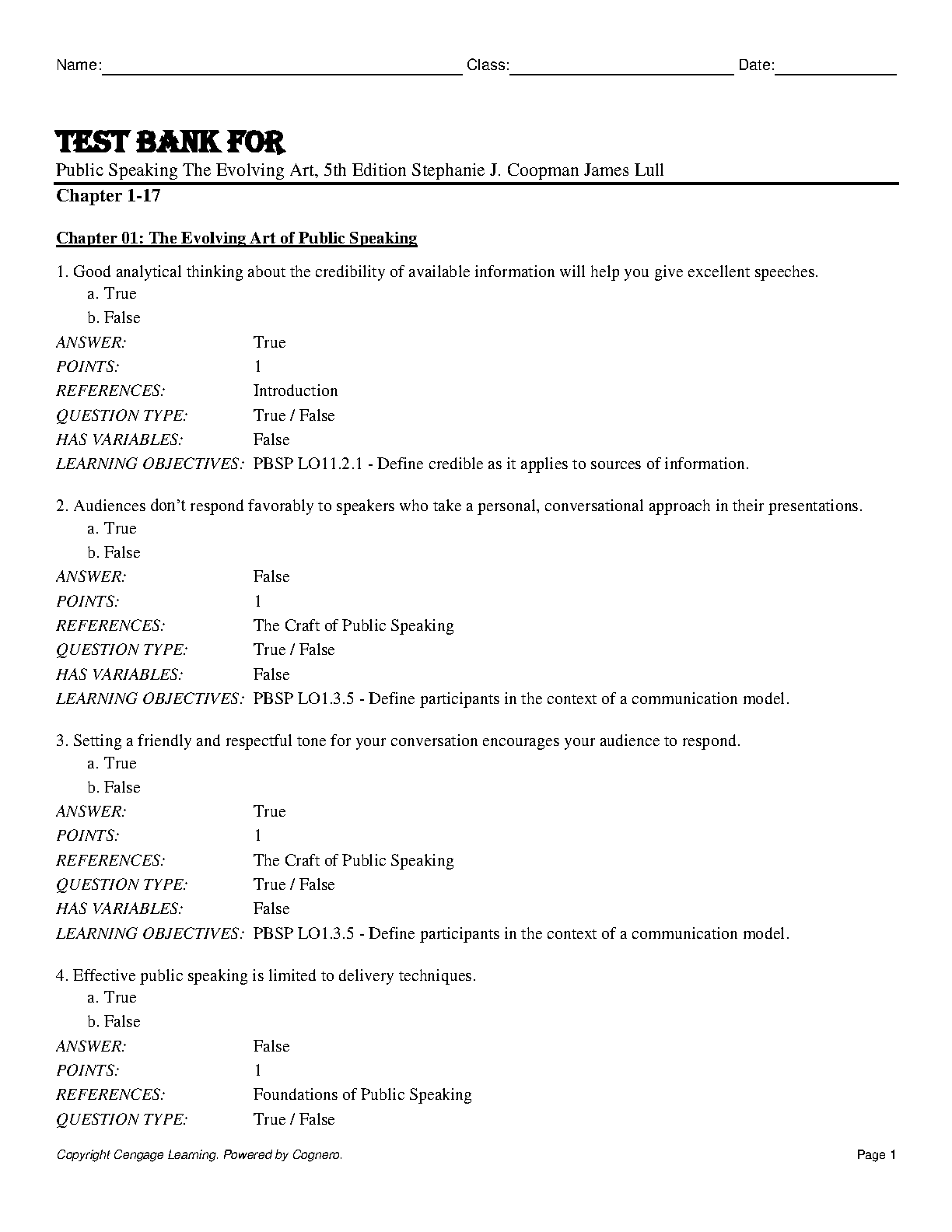 Ace your Public Speaking exams with this comprehensive test bank! This resource, created by Stephanie J. Coopman and James Lull, provides a wealth of practice questions to help you master the material and achieve exam success on your first attempt.