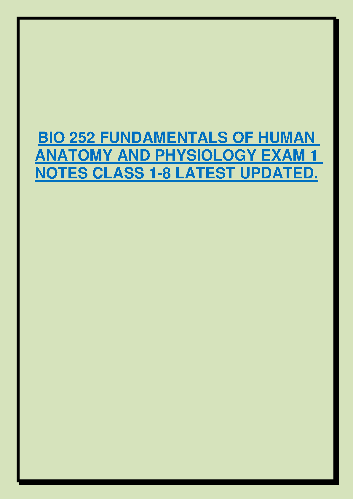 Ace your BIO 252 Fundamentals of Human Anatomy and Physiology Exam 1 with these updated notes covering classes 1-8. Designed to help students pass on their first attempt and avoid resits, this resource provides a clear and concise overview of essential concepts.
