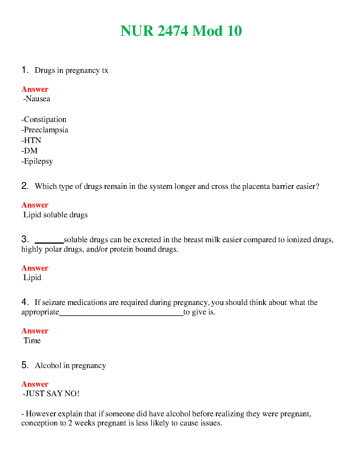 Ace your NUR 2474 exam with this concise guide covering crucial topics such as drugs in pregnancy, breastfeeding considerations, and alcohol use during pregnancy. Prepare effectively and avoid resits.