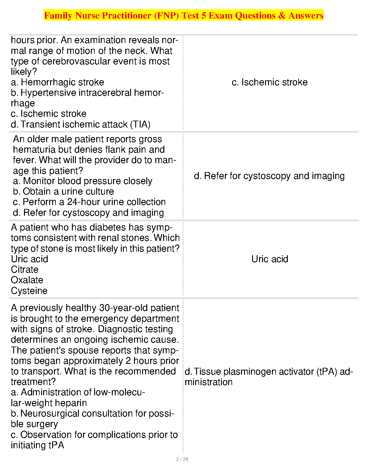 Ace your Family Nurse Practitioner (FNP) exam on your first attempt with this comprehensive 2024-2025 study guide. This resource contains practice questions and answers covering a wide range of topics to ensure you're fully prepared for exam day. Avoid resits and achieve your FNP certification goals.