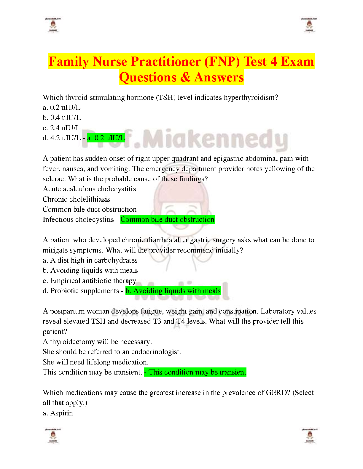 Family Nurse Practitioner (FNP) Test 4 Exam Questions & Answers: 2024-2025 Edition by Unknown Author