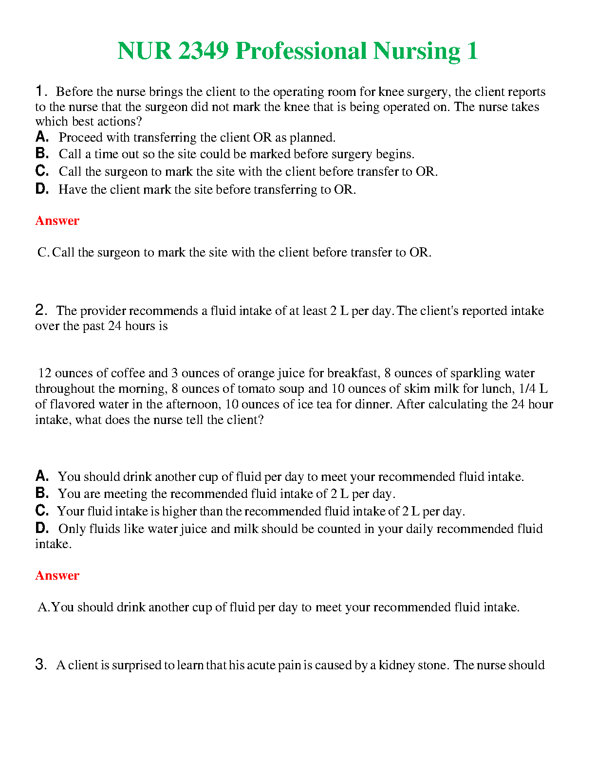 NUR 2349 Professional Nursing 1 Exam Prep Guide for 2024-2025: Ace Your Exams on the First Attempt