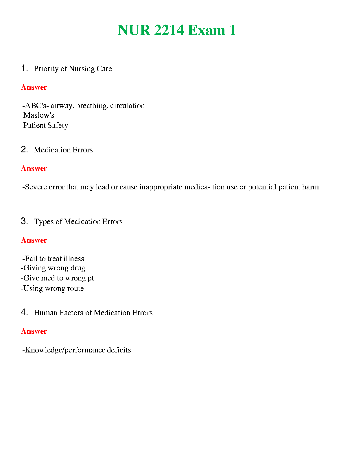 Ace your NUR 2214 exam with this concise and effective study guide. Covering key concepts like priority of nursing care, medication errors, and human factors, this resource is designed to help students master the material and pass on their first attempt. Avoid resits and boost your confidence with this essential exam preparation tool.