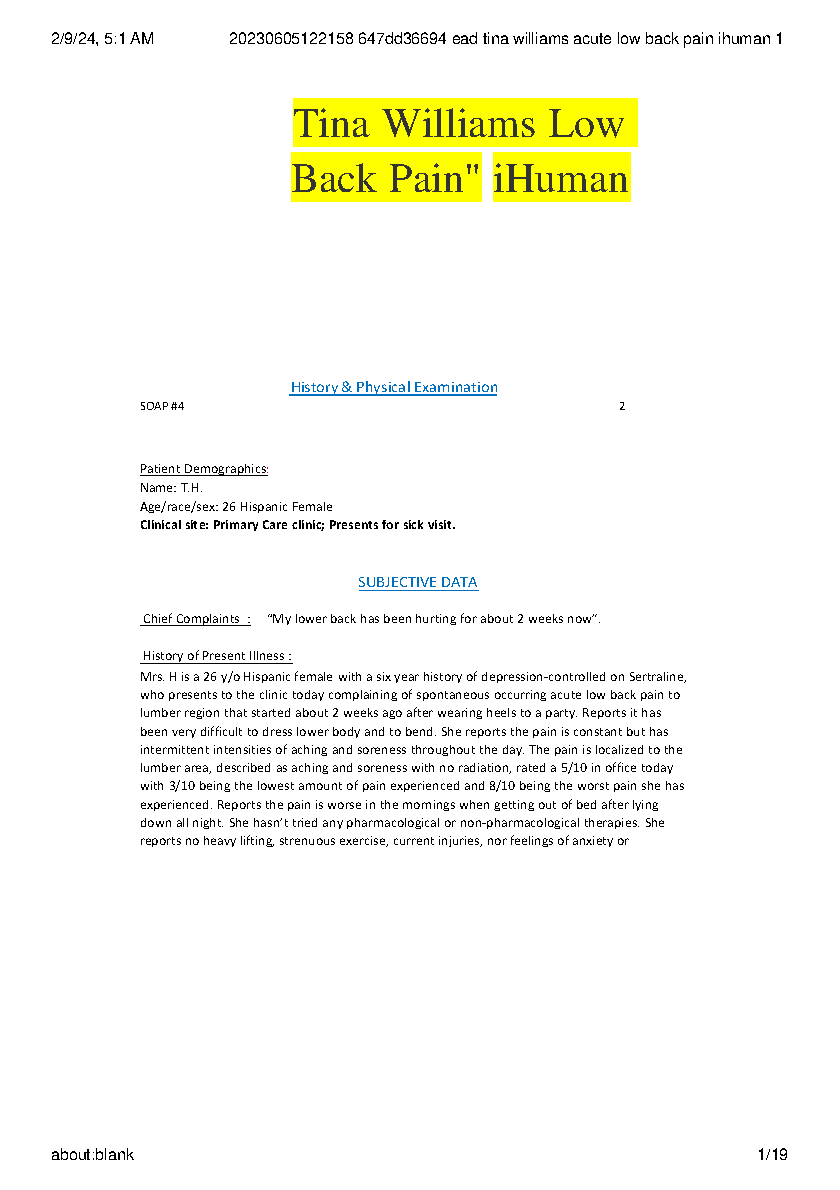 Tina Williams Low Back Pain iHuman Case Study: A 2024-2025 Guide for Students to Ace Exams on the First Attempt