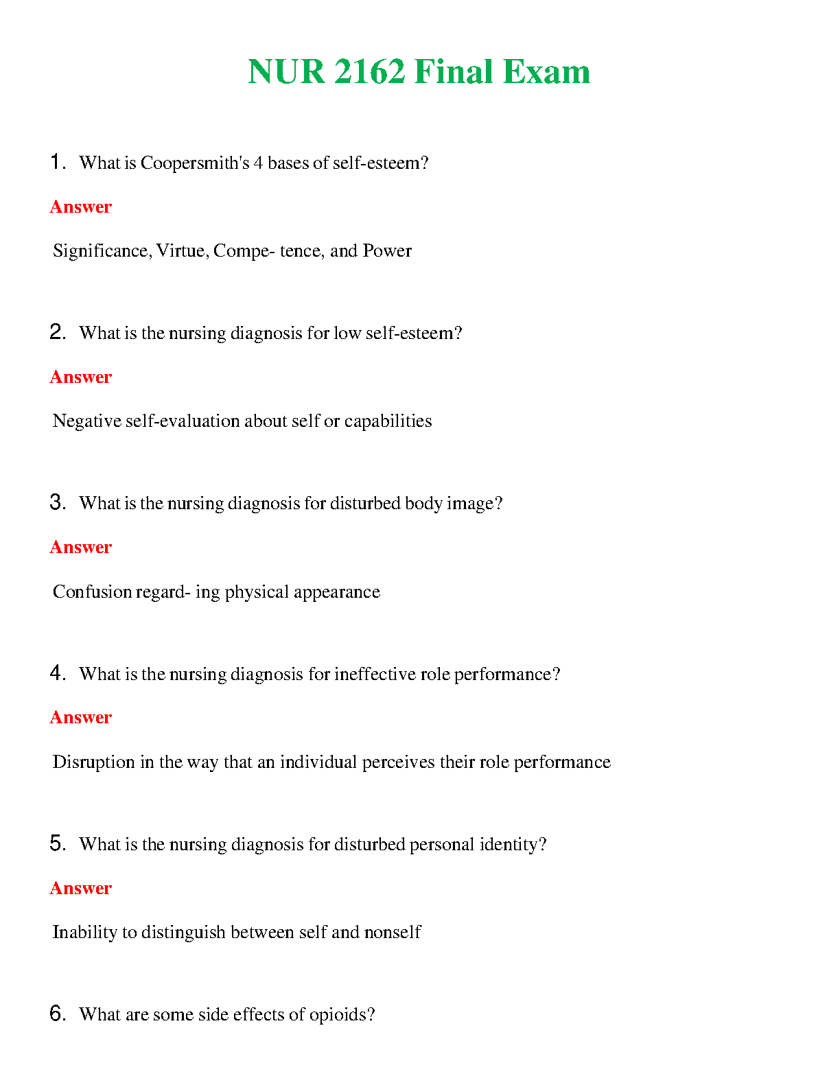 NUR 2162 Final Exam Review: Ace Your Nursing Exam with This Comprehensive Guide