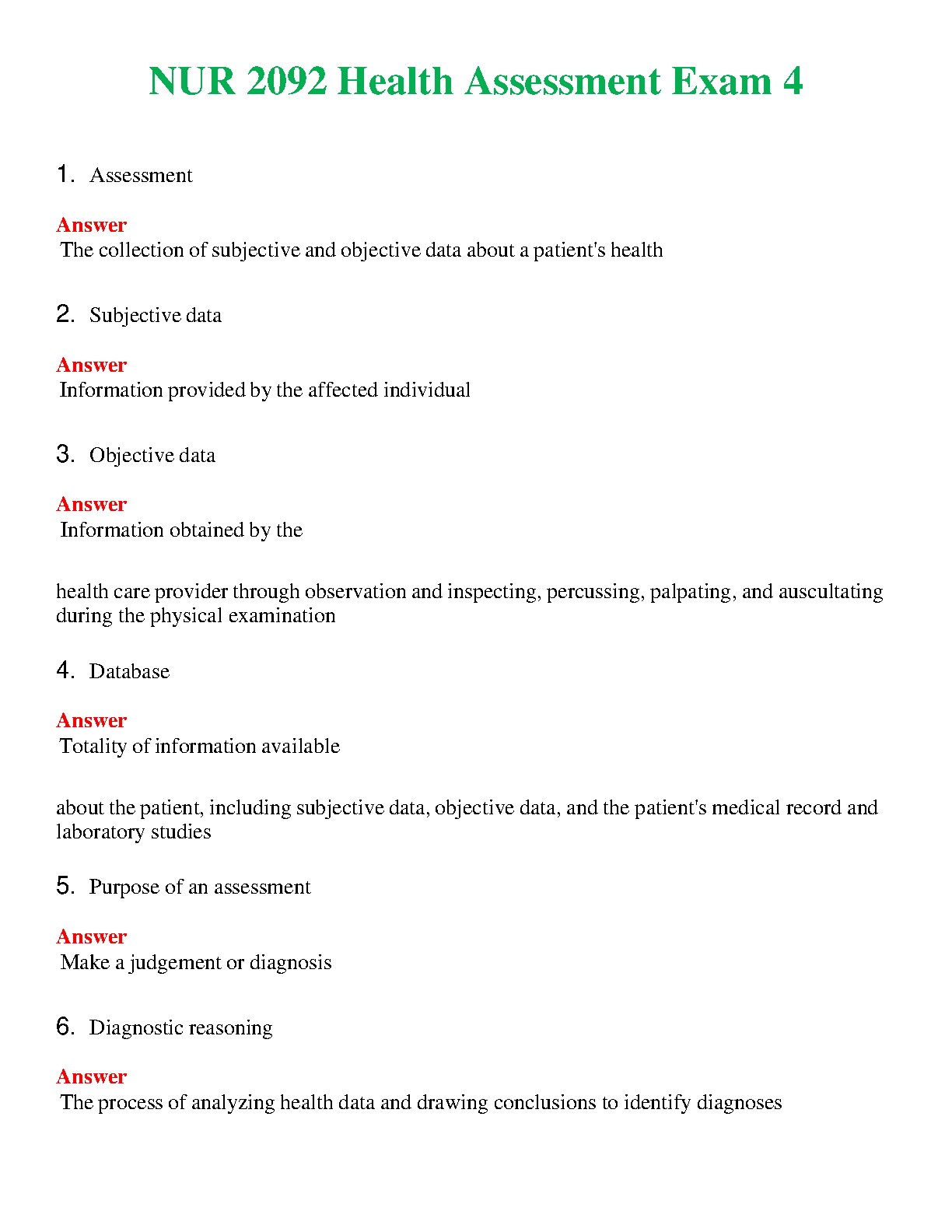 NUR 2092 Health Assessment Exam 4: A Complete Guide for Students to Ace Exams and Avoid Resits (2024-2025 Edition)