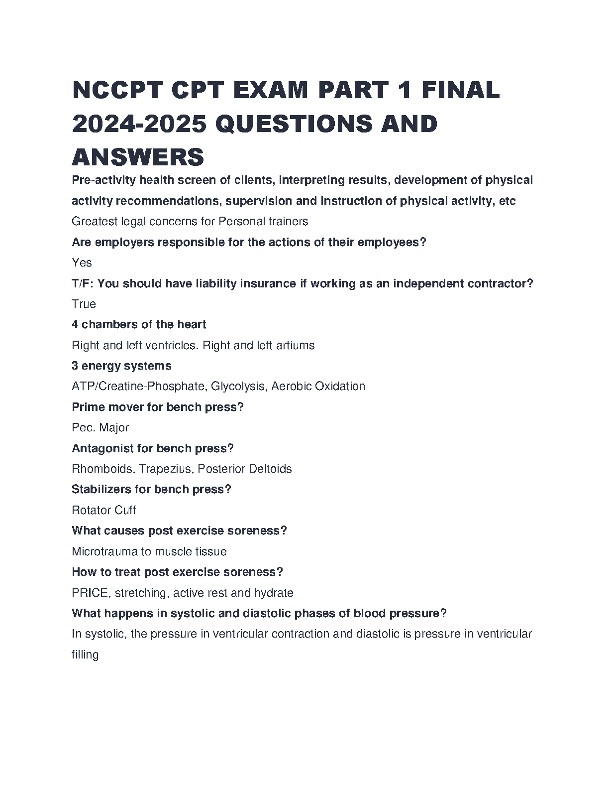 NCCPT CPT Exam Part 1 Final 2024-2025 Questions and Answers