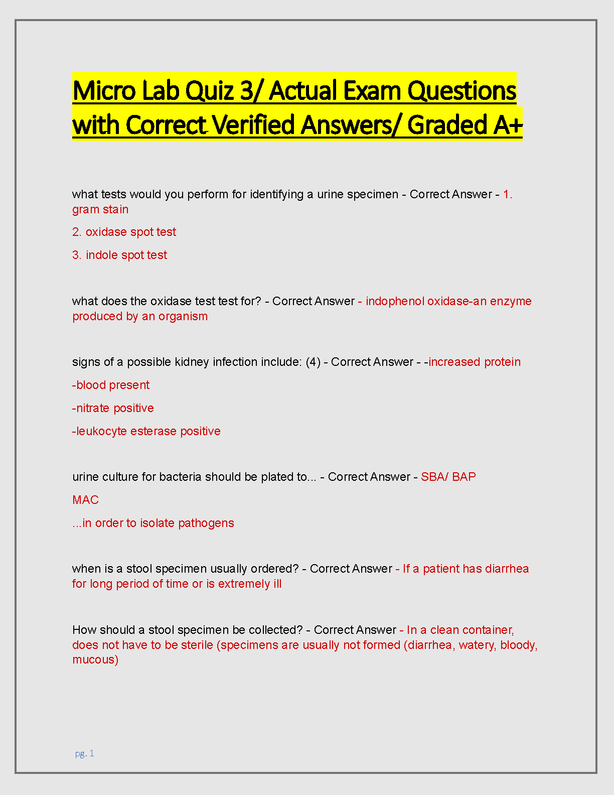 Micro Lab Quiz 3: Actual Exam Questions with Verified Answers and Graded A+