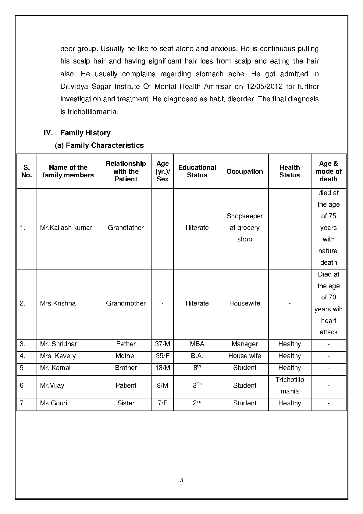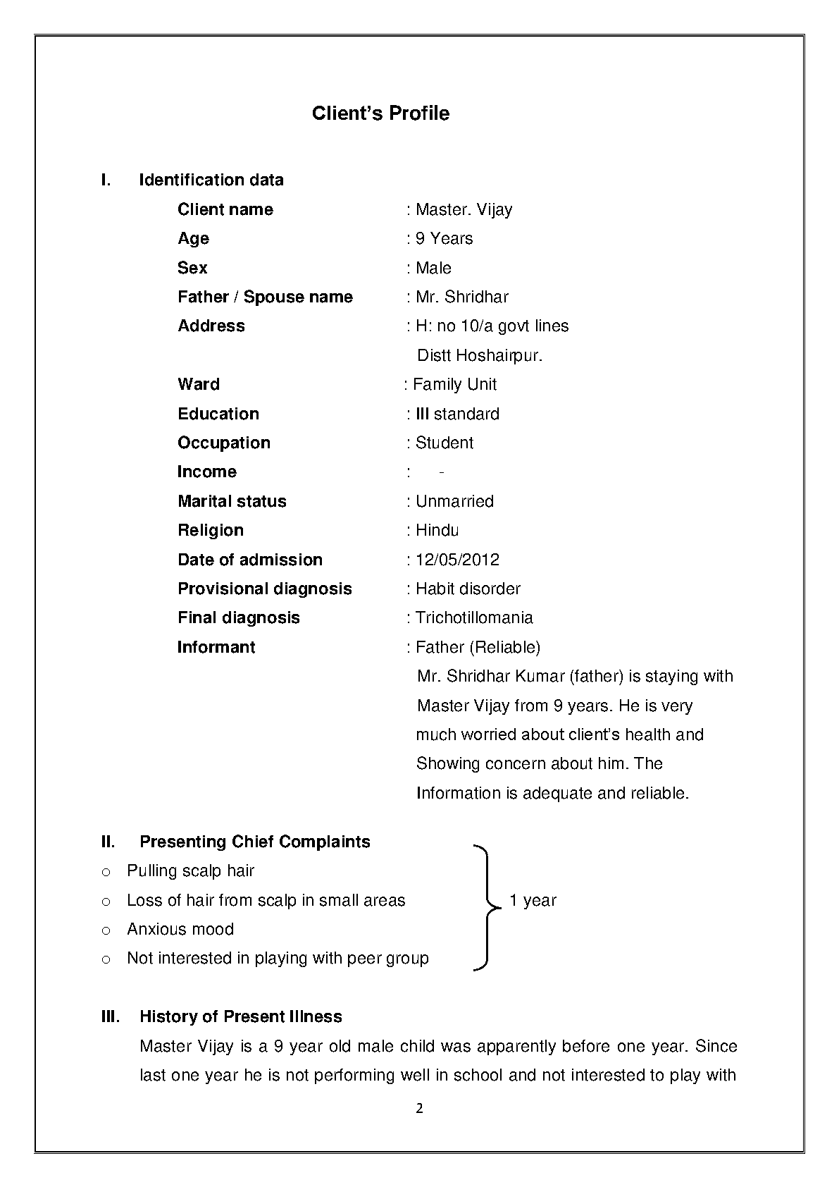 Case Study on Trichotillomania (Hair-Pulling Disorder) by Vijay