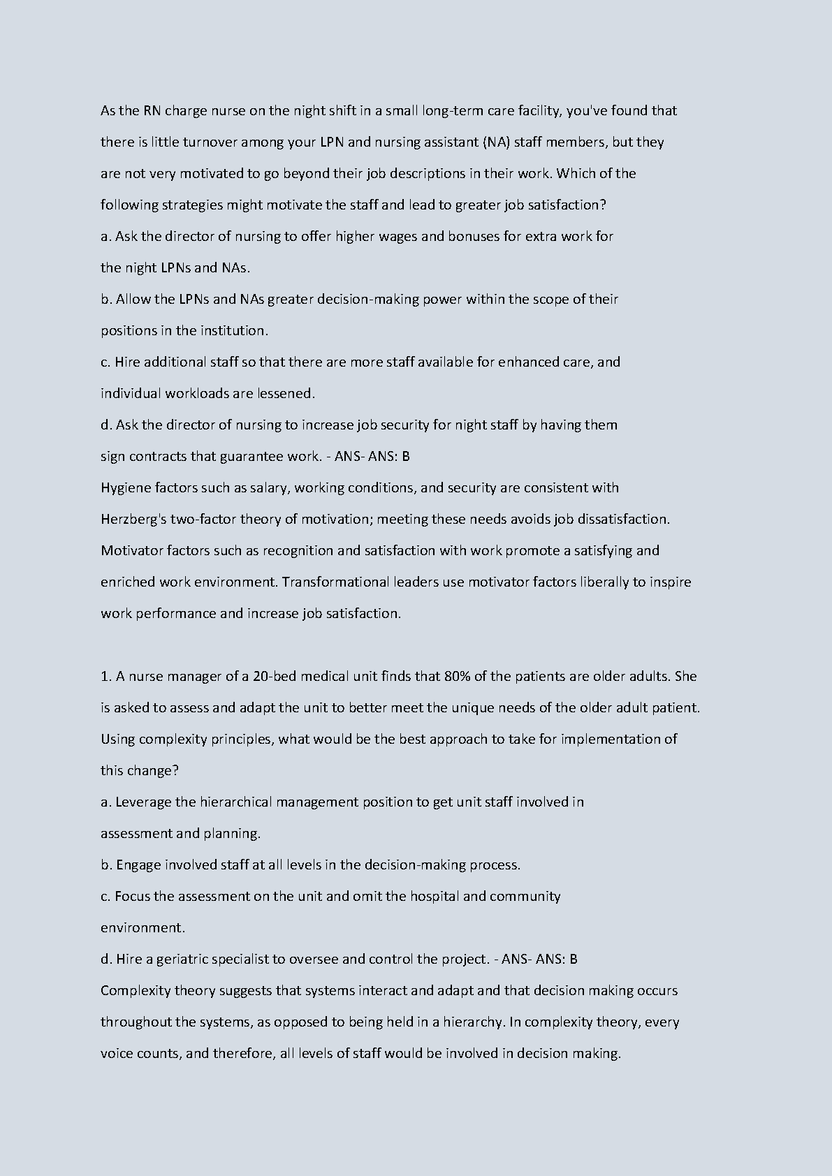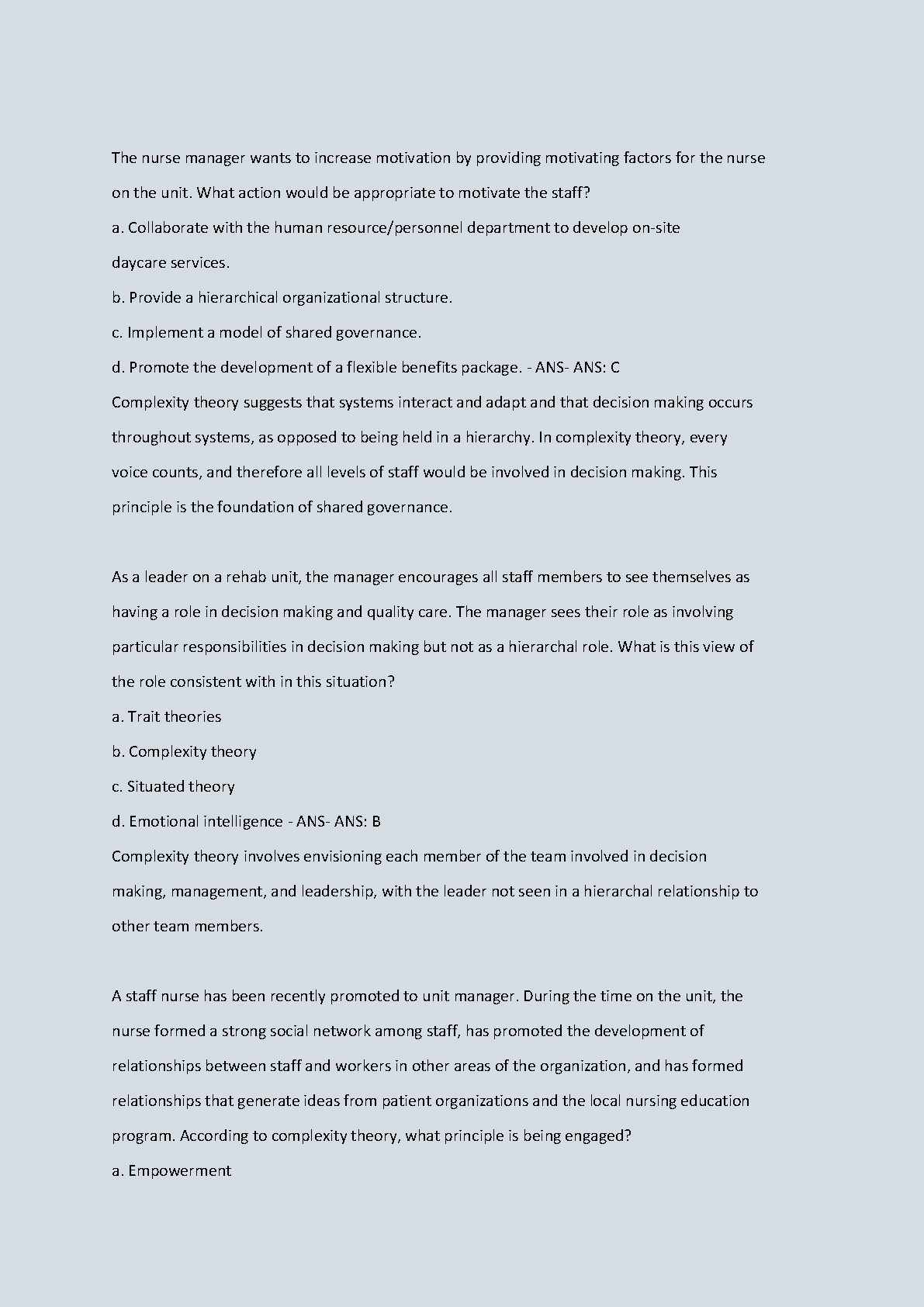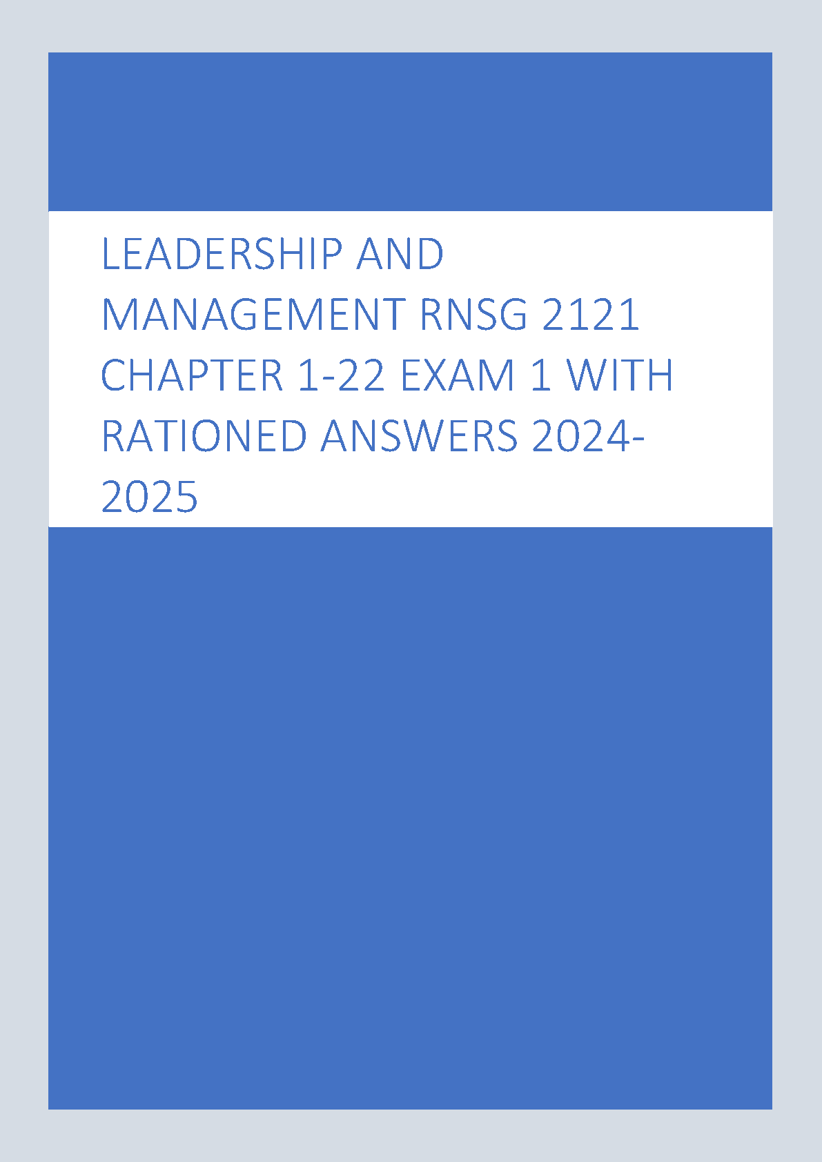 Ace your RNSG 2121 Leadership and Management Exam with this comprehensive solution manual covering Chapters 1-22. Designed for the 2024-2025 academic year, these answers will help you master the material and pass on your first try.