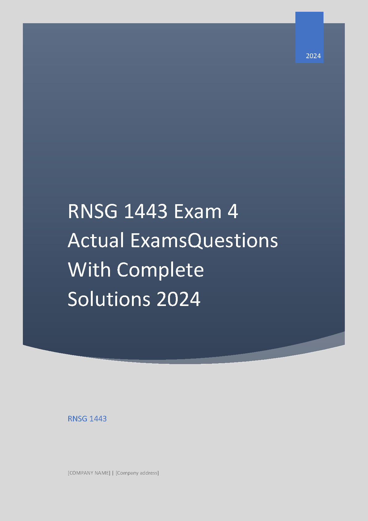 RNSG 1443 Exam 4: Actual Exams Questions With Complete Solutions 2024 Edition