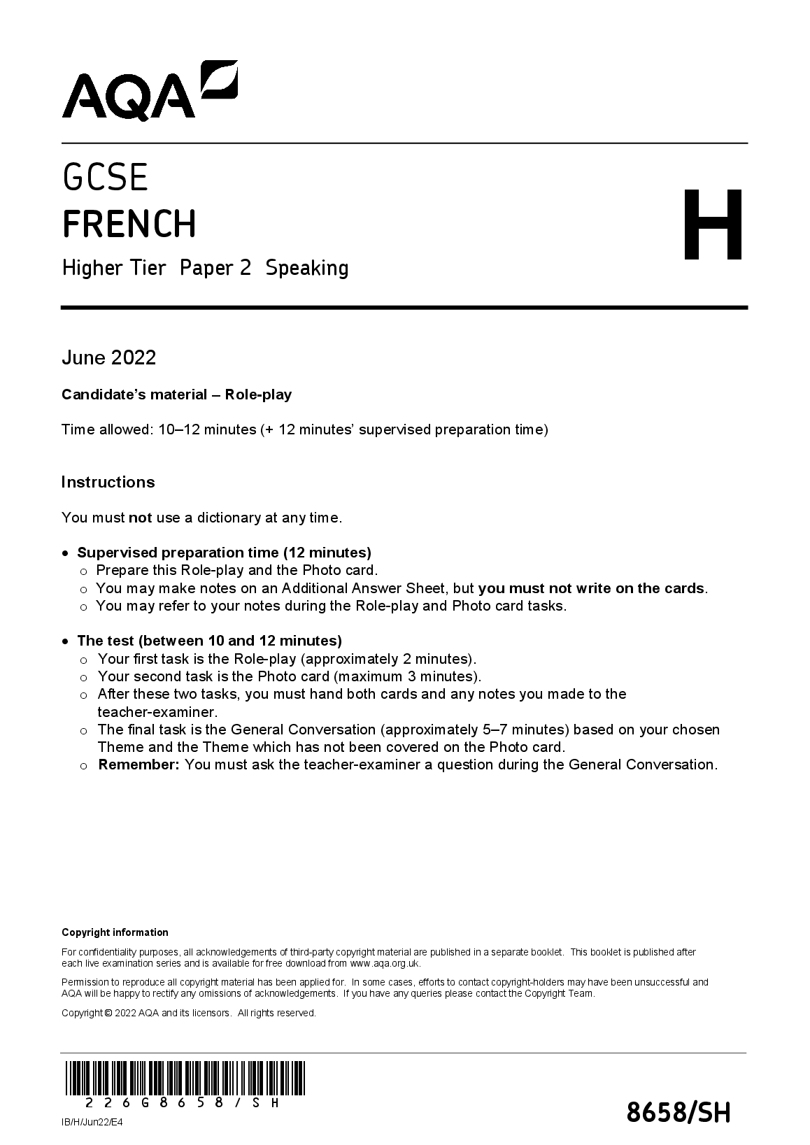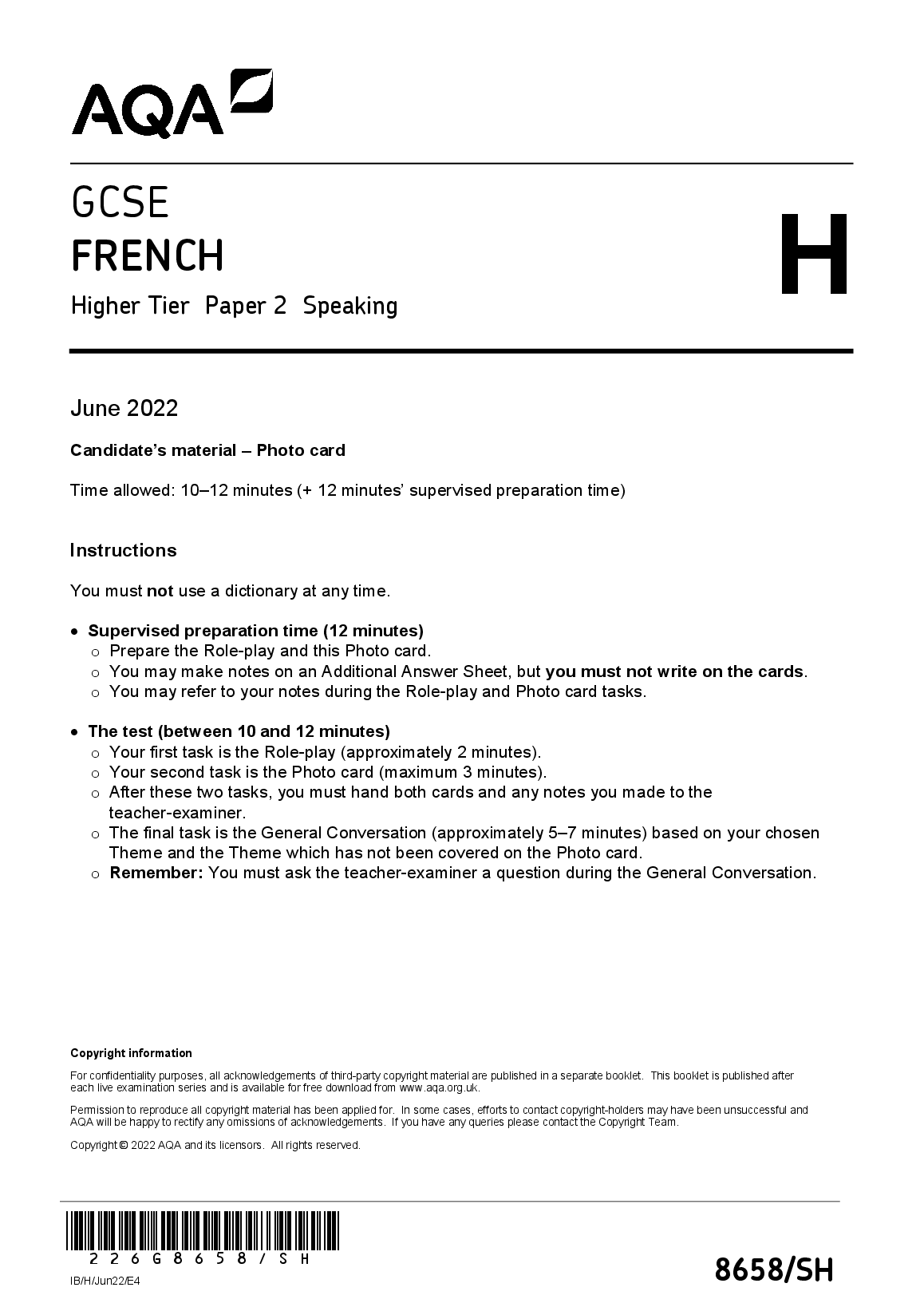 AQA GCSE STATISTICS PAPER 1 JUNE 2022 QUESTION PAPER (8382/1H: Higher tier)