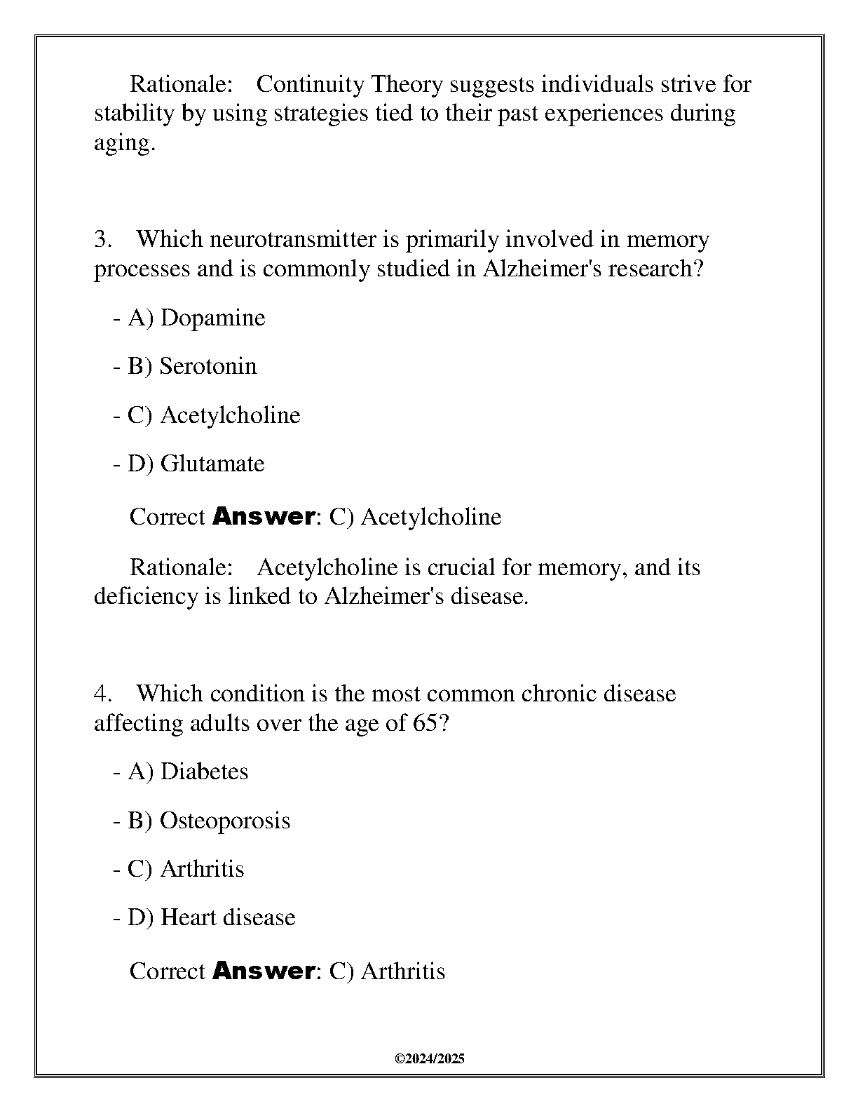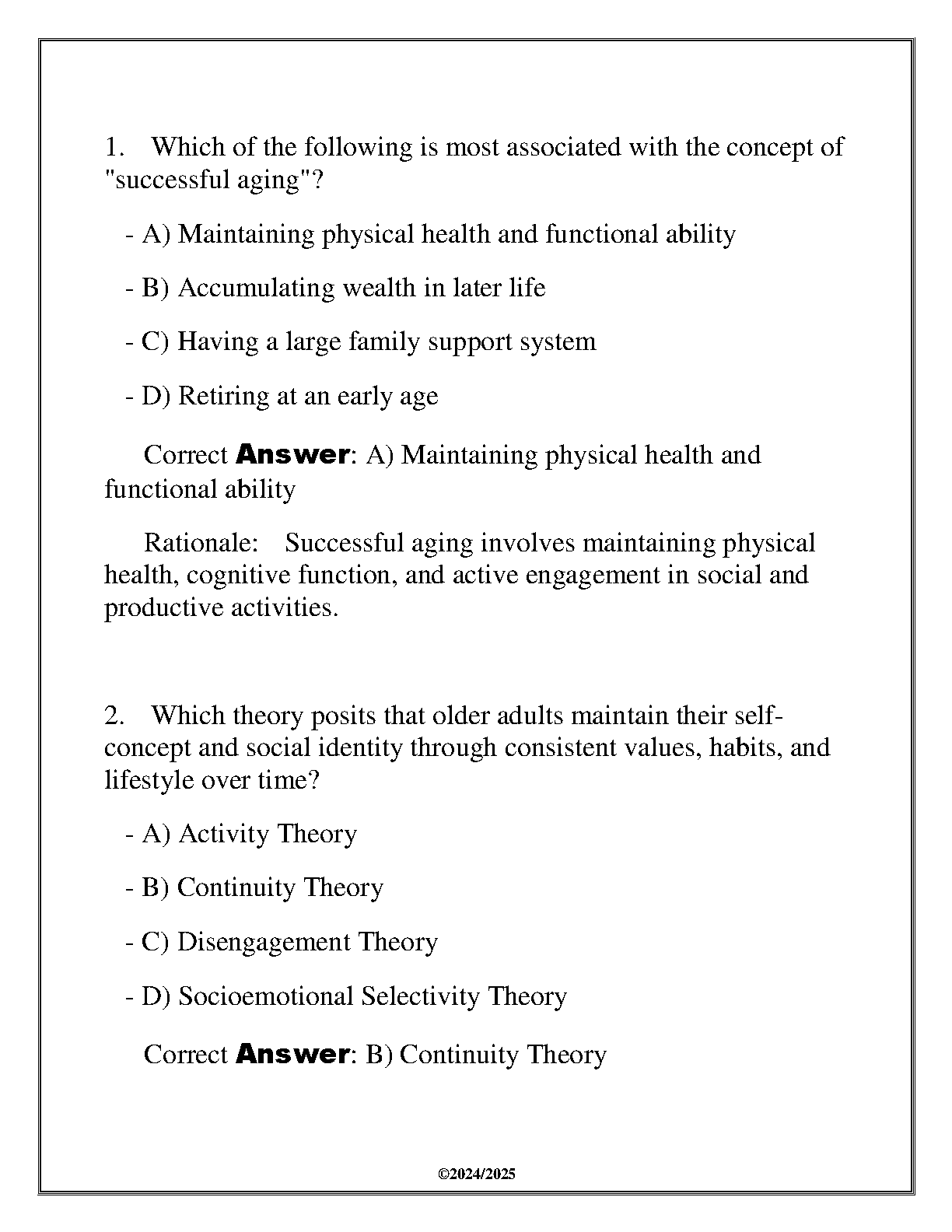DEP 6406 Advanced Adulthood & Aging: Latest Finals Review Q&A for 2024/2025 Academic Year