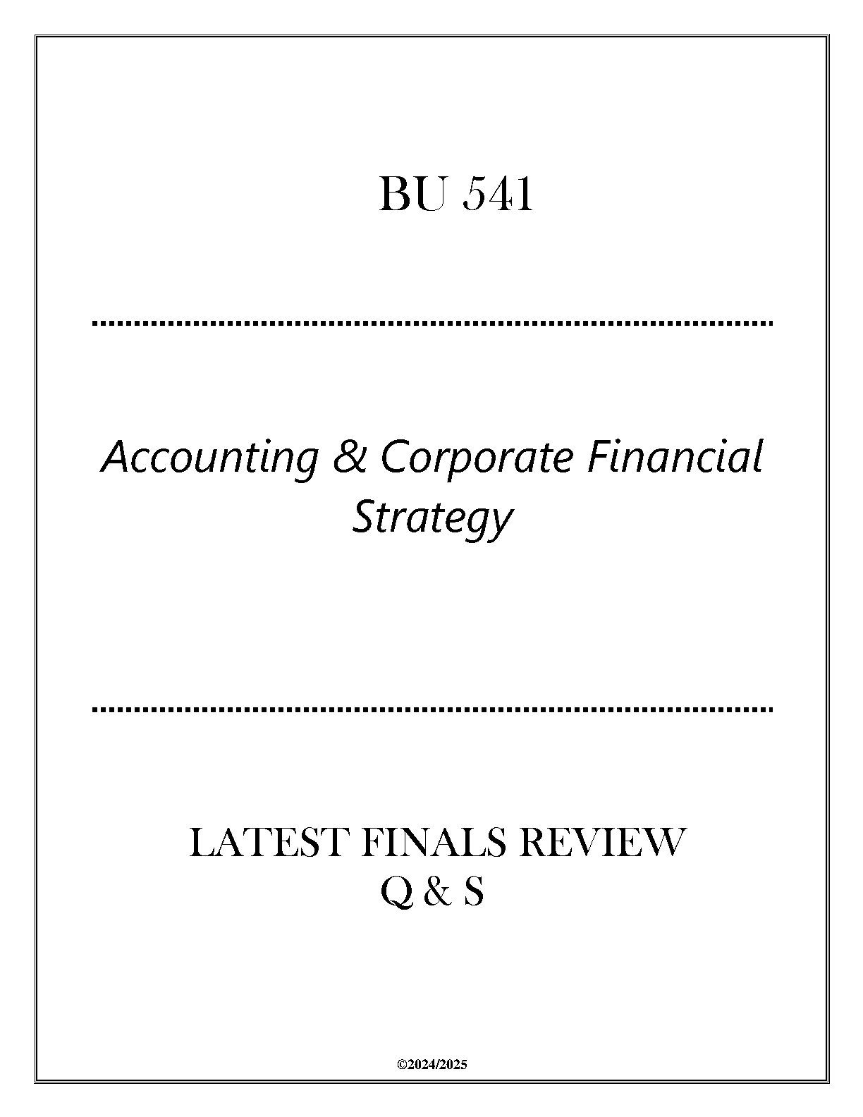 BU 541 Accounting & Corporate Financial Strategy: Latest Finals Review Questions and Answers for 2024/2025 Academic Year