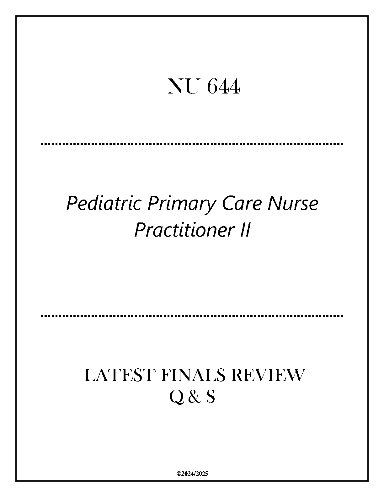 This comprehensive NU 644 study guide is designed to help students excel in their Pediatric Primary Care Nurse Practitioner II finals. This resource contains questions and answers covering all key concepts, ensuring first-attempt exam success and avoiding resits. Prepare for your exams with confidence using this up-to-date guide for the 2024-2025 academic year.