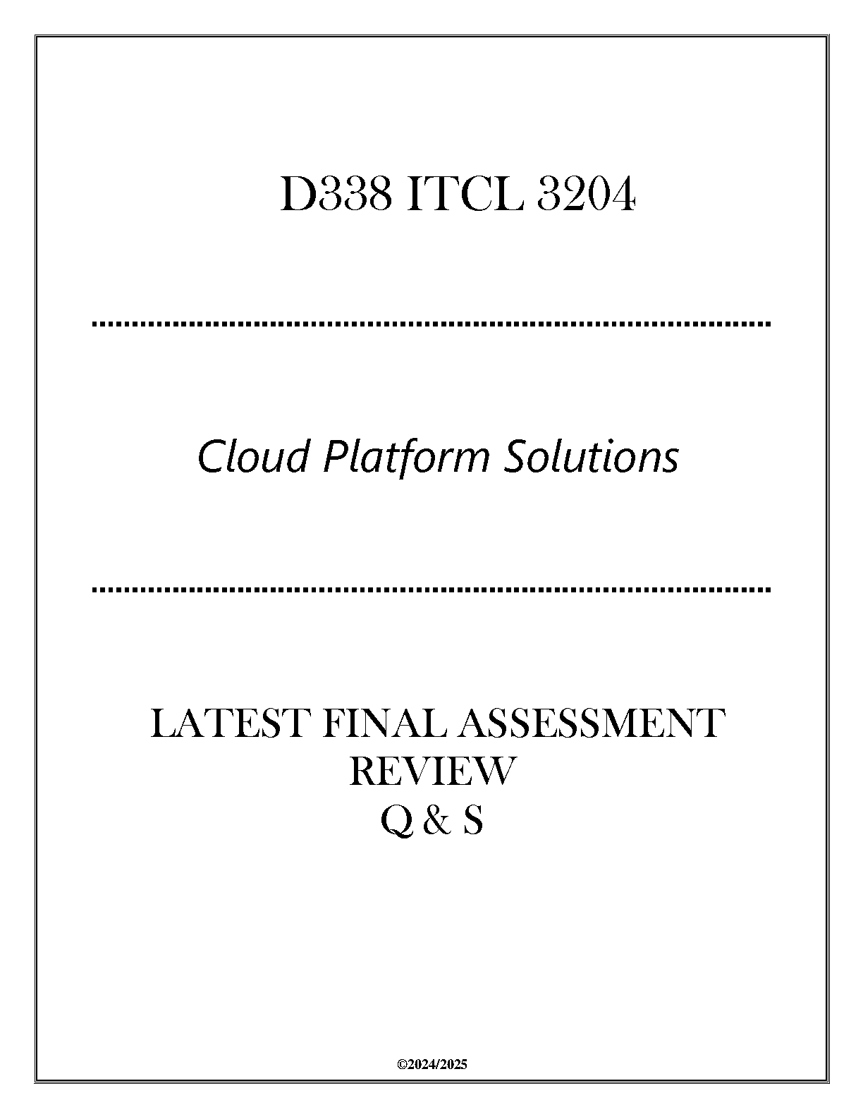 Ace your D338 ITCL 3204 Cloud Platform Solutions final exam with this comprehensive question and answer review guide. Designed for the 2024-2025 academic year, this resource helps students master key concepts and achieve exam success on their first attempt.