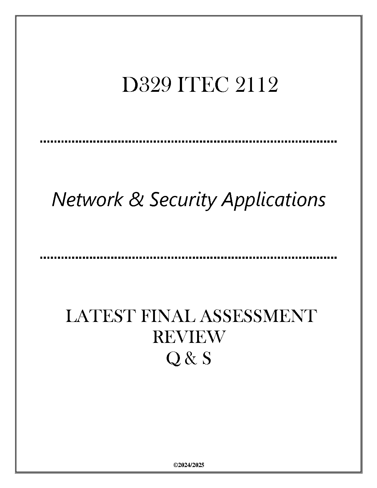 Ace your ITEC 2112 final exam with this comprehensive review guide, packed with questions and answers covering all key concepts in Network & Security Applications. Designed for first-time success, avoid resits and master the material.