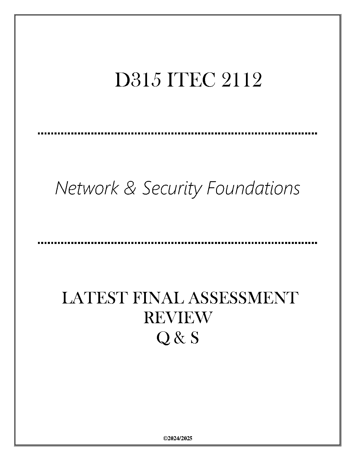 ITEC 2112 Network & Security Foundations: Latest 2024/2025 Final Assessment Review Q&A
