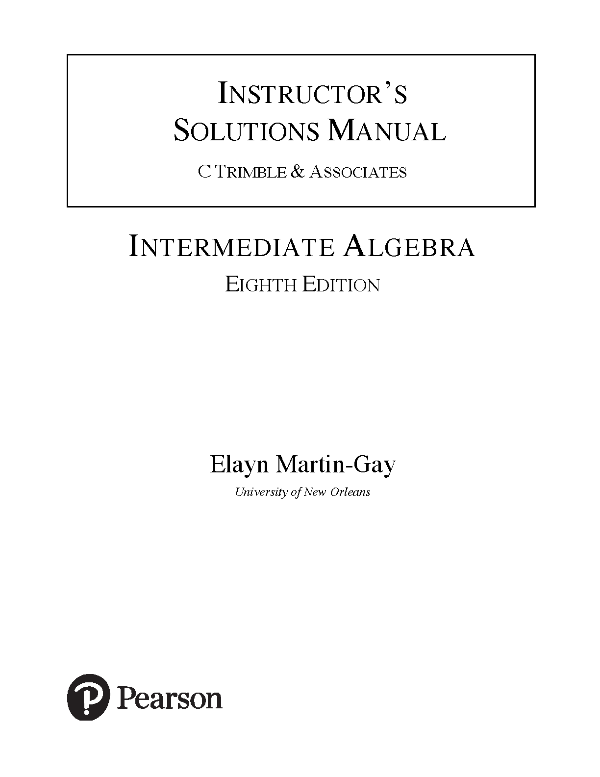 Instructor's Solutions Manual for Intermediate Algebra, Eighth Edition by Elayn Martin-Gay