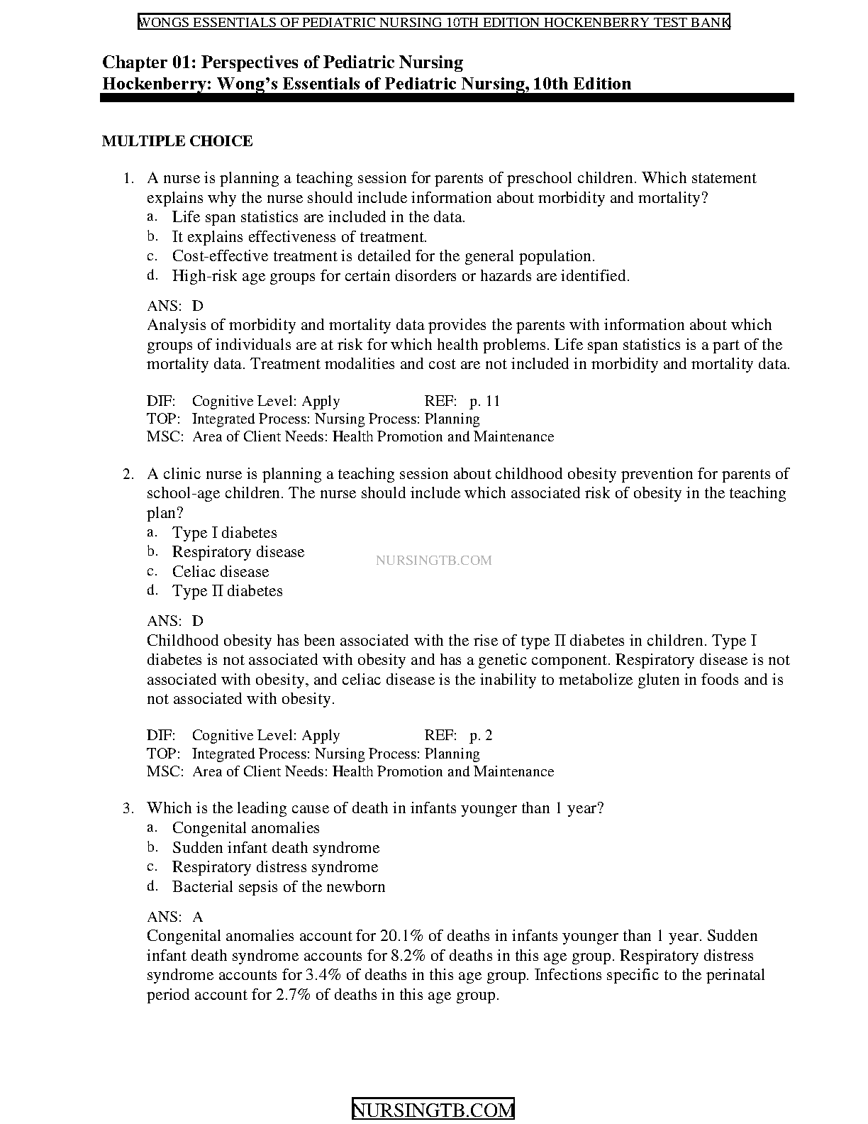 Ace your Pediatric Nursing exams with this comprehensive test bank for Wong's Essentials of Pediatric Nursing, 10th Edition. Prepare effectively for success and avoid resits. This resource is designed to help you master the subject matter and achieve top marks.