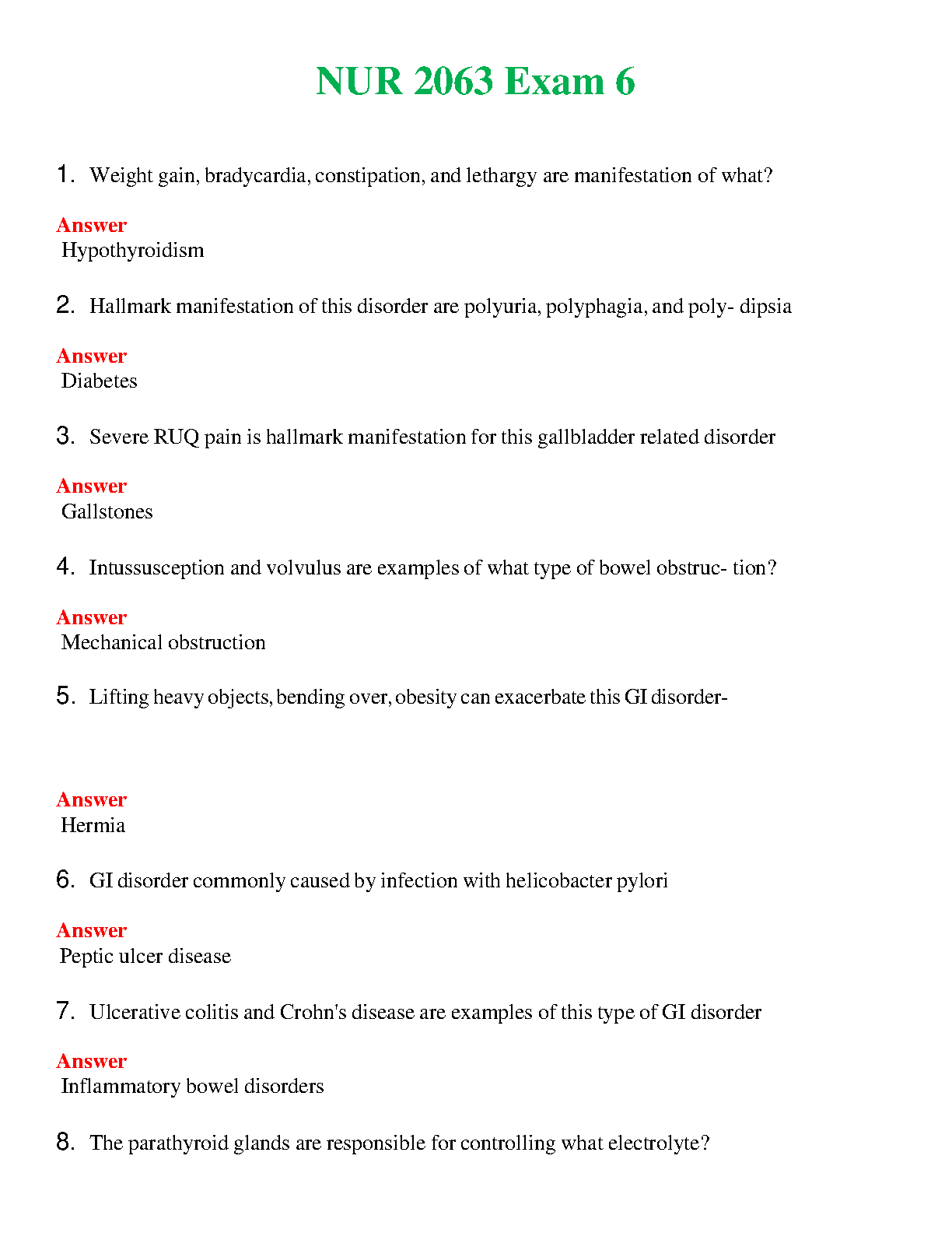 This comprehensive NUR 2063 Exam 6 review guide is designed to help students master the key concepts and ace their exams. It covers essential topics to ensure first-attempt exam success. Prepare for a higher score and avoid resits.