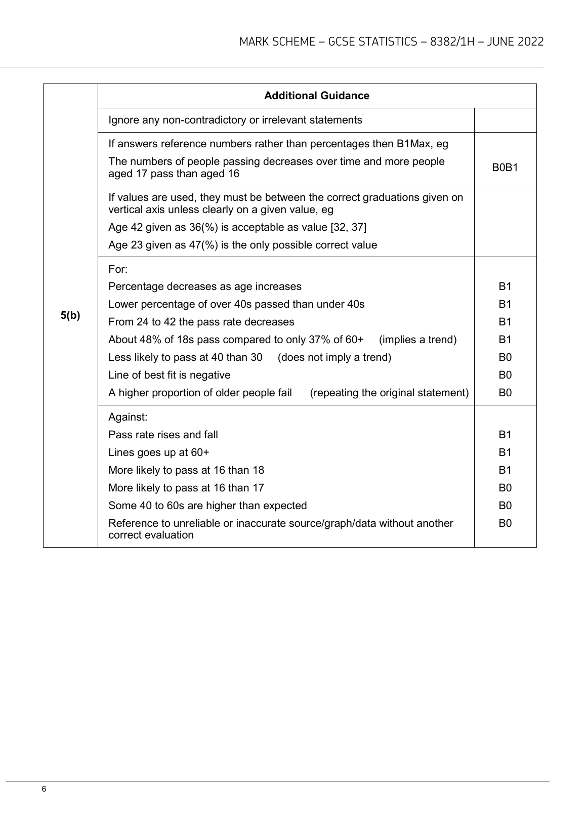 AQA GCSE STATISTICS PAPER 1 JUNE 2022 MARK SCHEME (8382/1H: Higher tier)