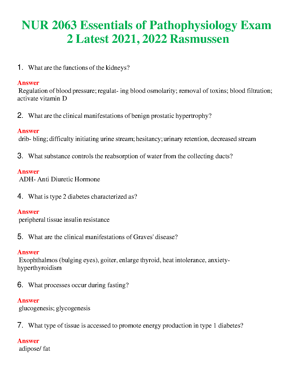 NUR 2063 Essentials of Pathophysiology Exam: 2024-2025 Edition - Rasmussen Review Guide for Exam Success