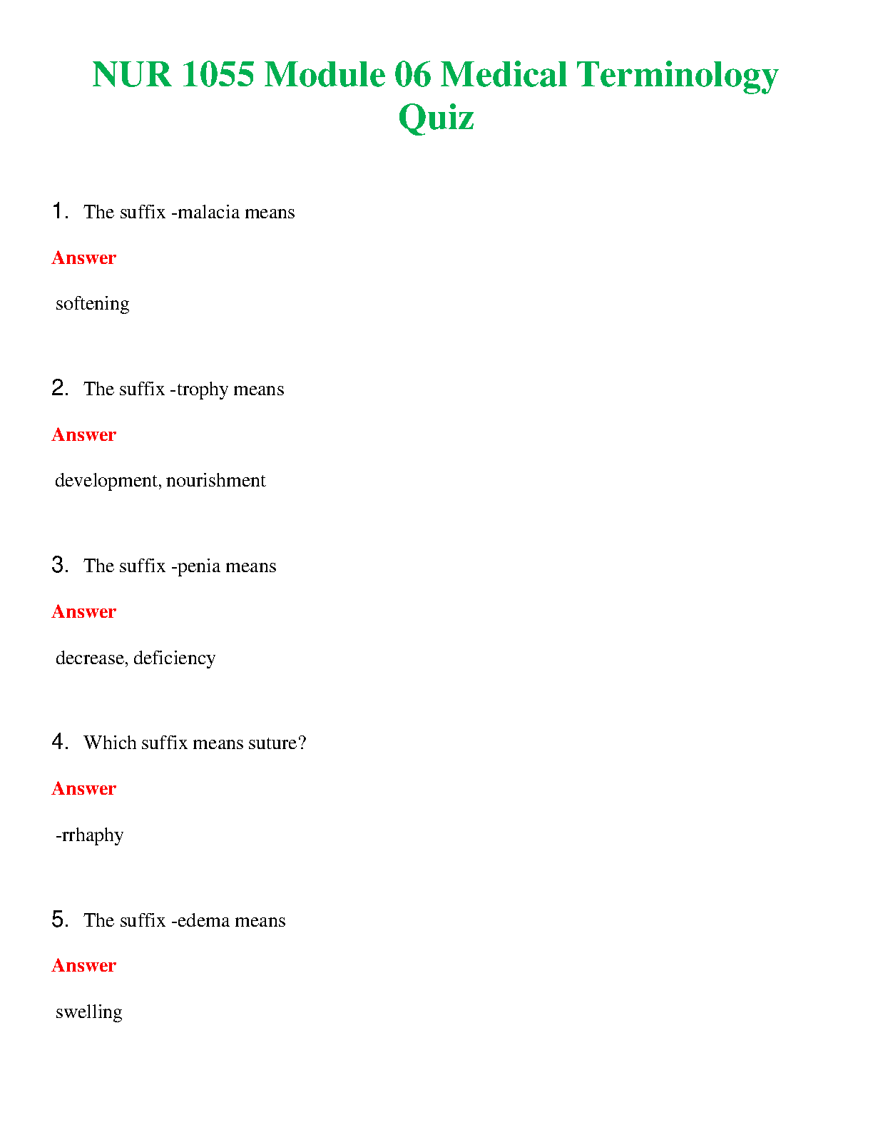 NUR 1055 Module 06 Medical Terminology Quiz: Ace Your Exams with this 2024/2025 Guide