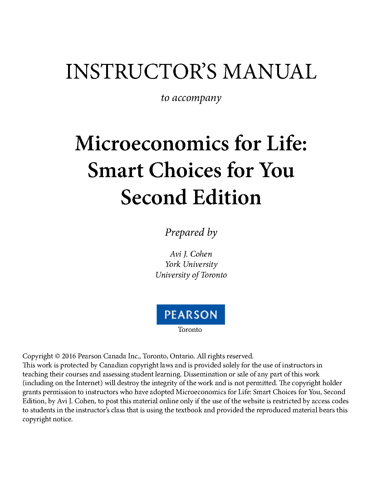 Microeconomics for Life, Second Edition Instructor's Manual by Avi J. Cohen