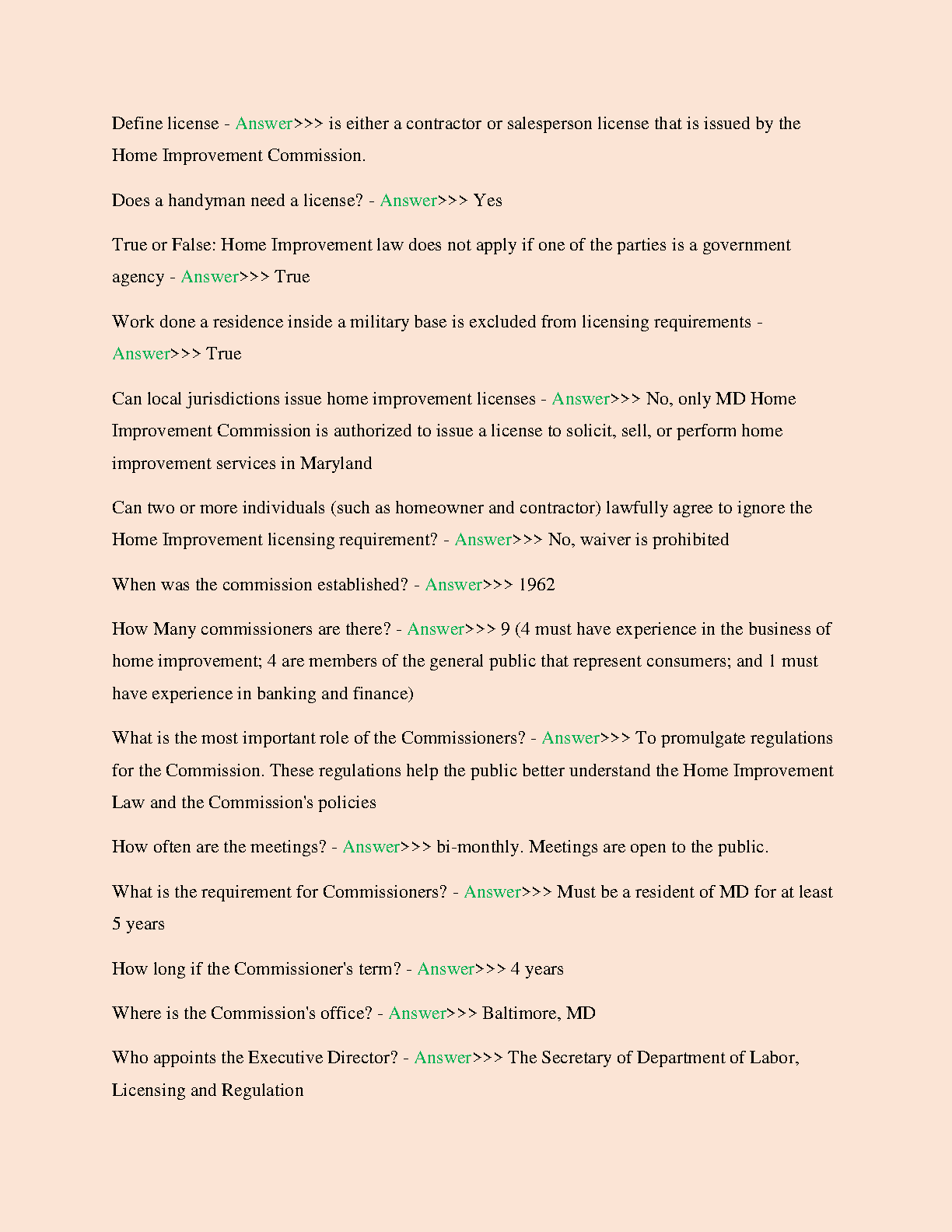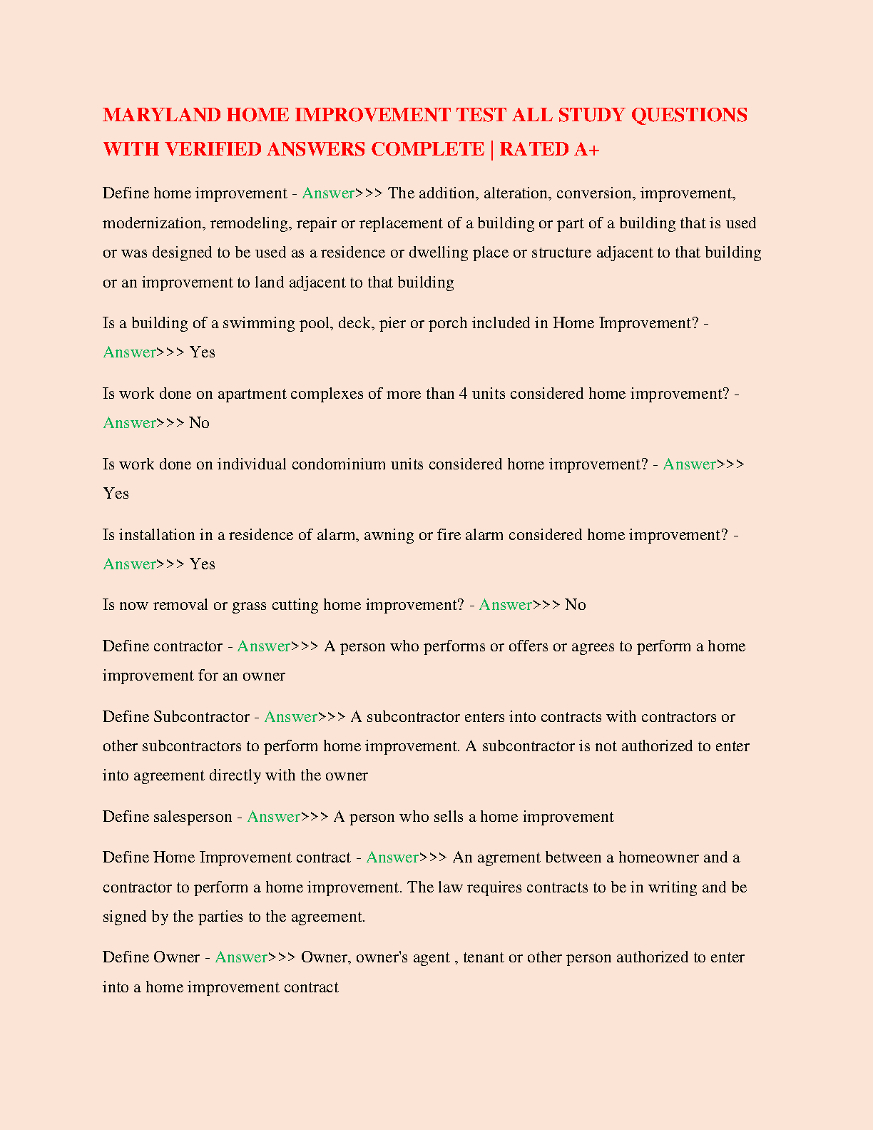 Maryland Home Improvement Test All Study Questions with Verified Answers - Complete Guide for 2024/2025