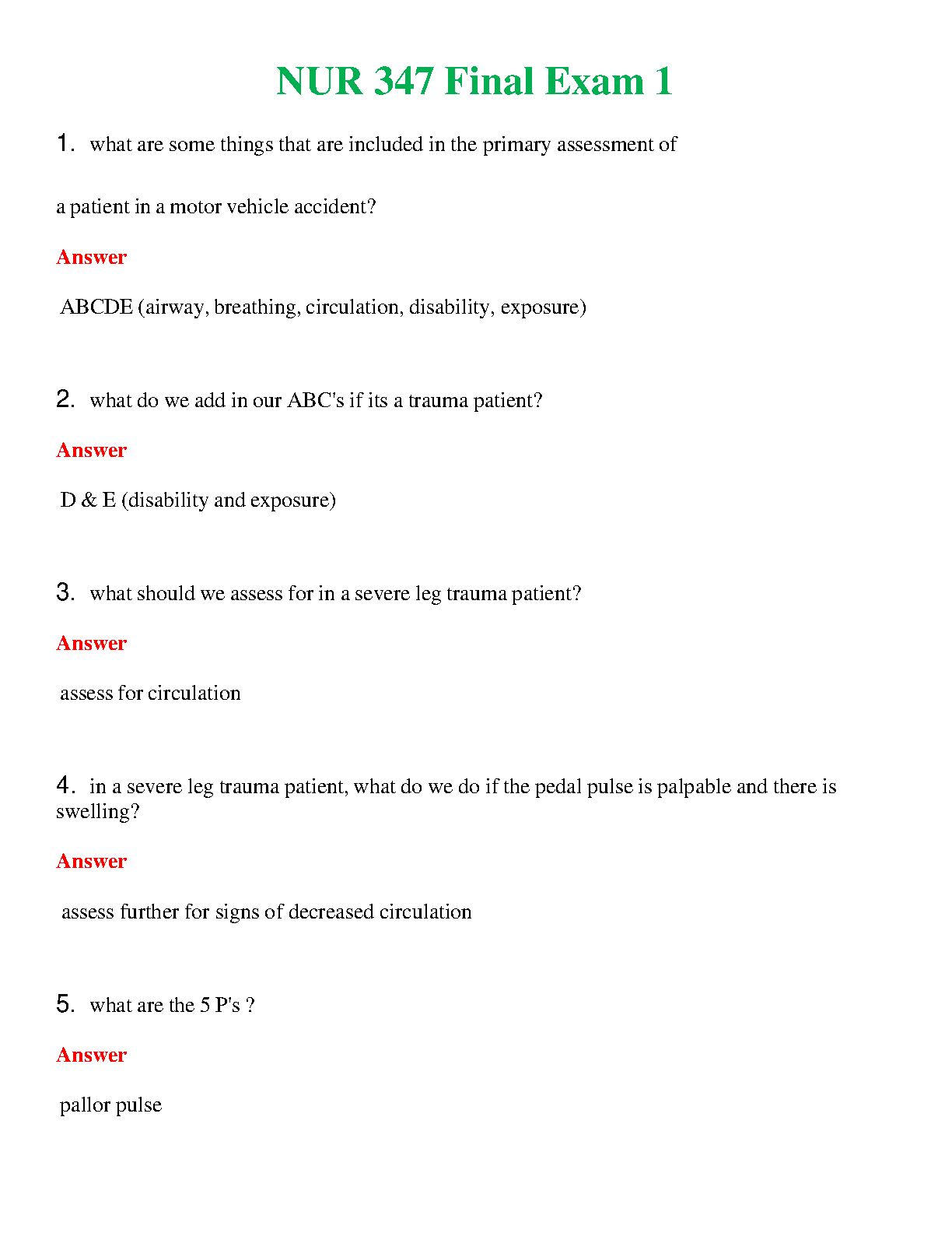 NUR 347 Final Exam 1: A Comprehensive Study Guide for Success